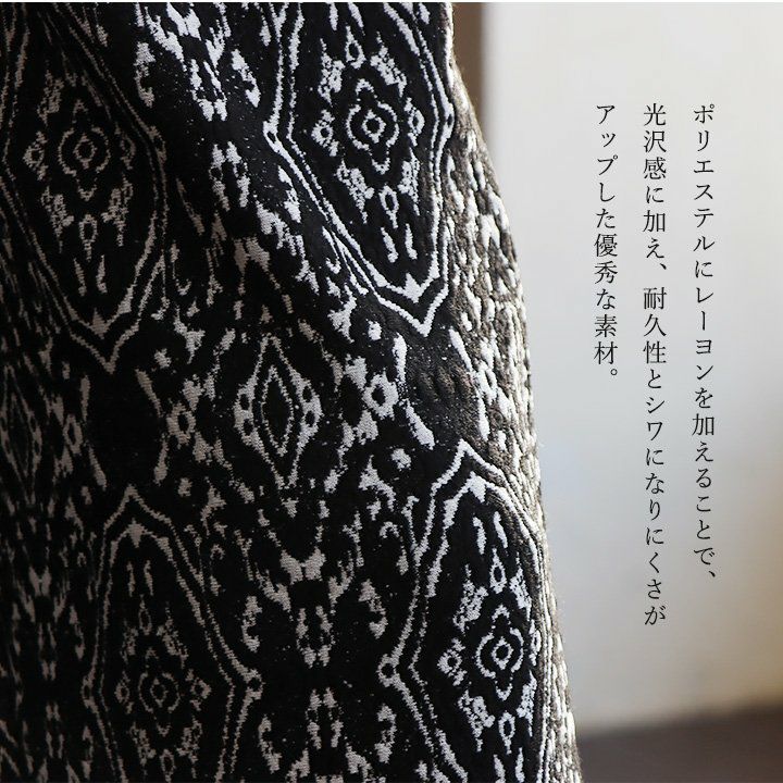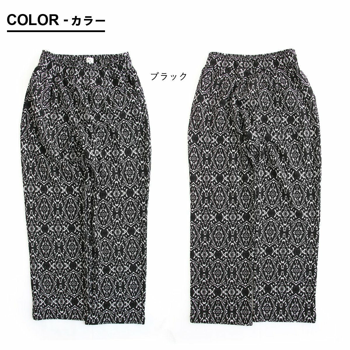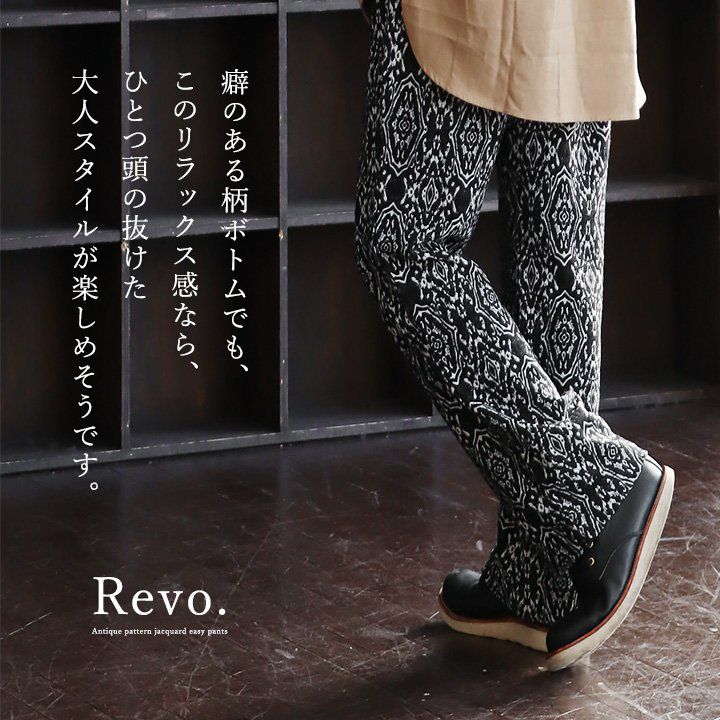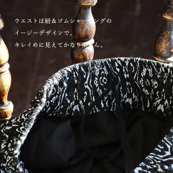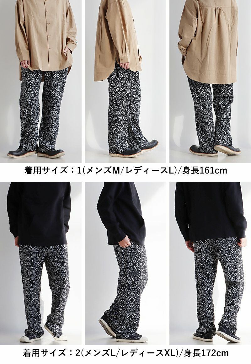 「癖」があるのに、大人なリラックス感をプラス。 パンツ ストレート メンズ レディース ウエストゴム カットソー地 セミワイド タック 深股上 総柄 レトロ アンティーク ダマスクジャガード 楽ちん リラックス