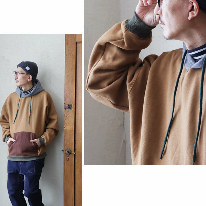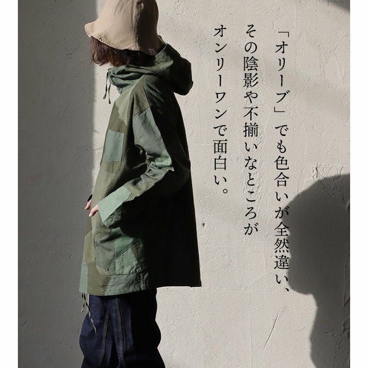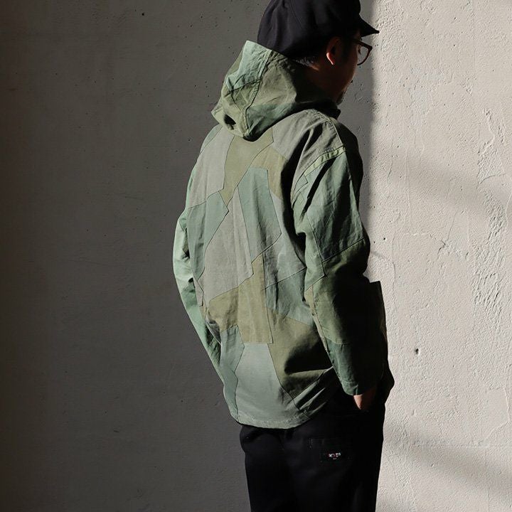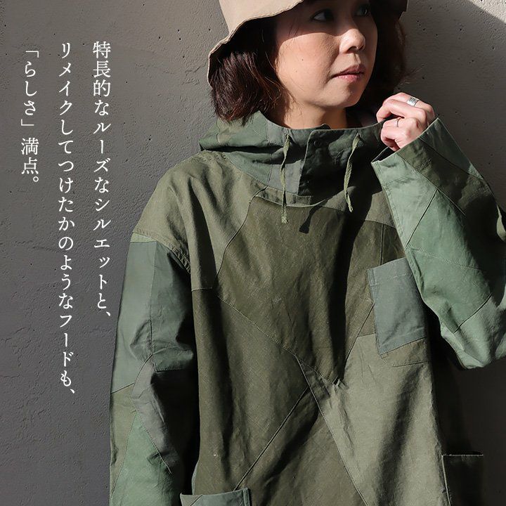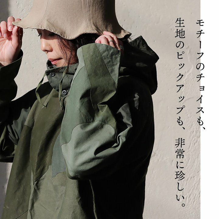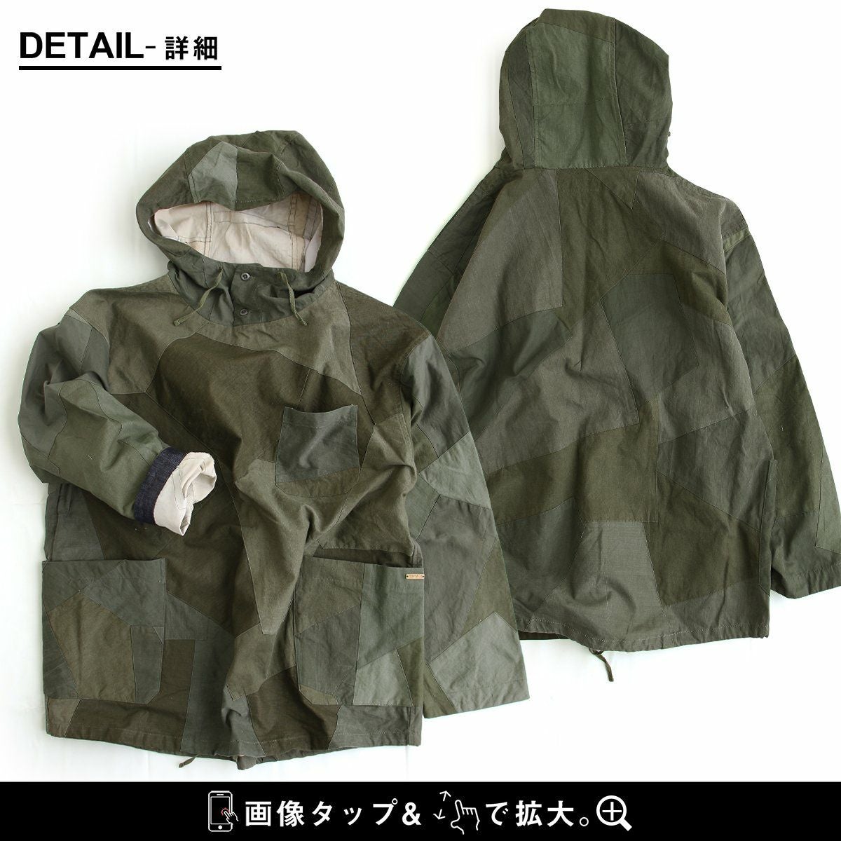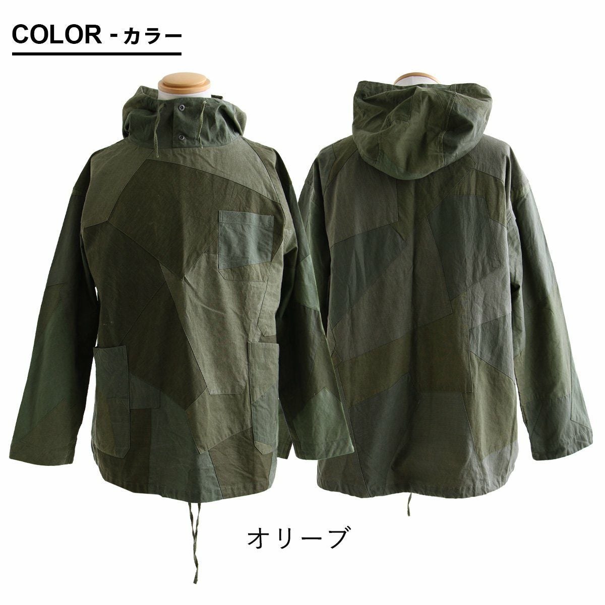 モチーフのチョイスも、生地のピックアップも、非常に珍しい。 SLOW HANDS スローハンズ パーカー プルオーバー 長袖 メンズ レディース スモック フーディ パッチワーク フィッシャーマン インド軍 テント地 ミリタリー