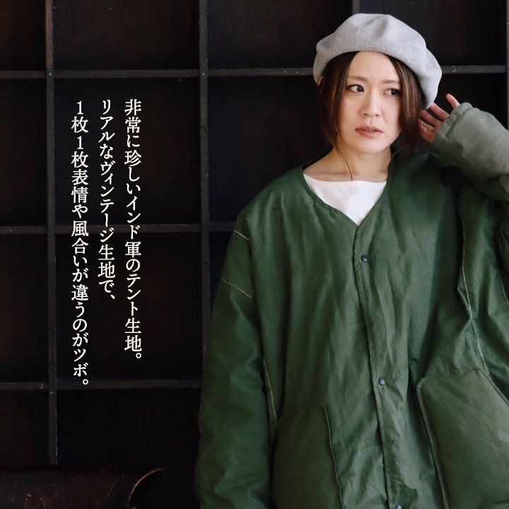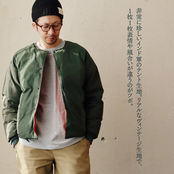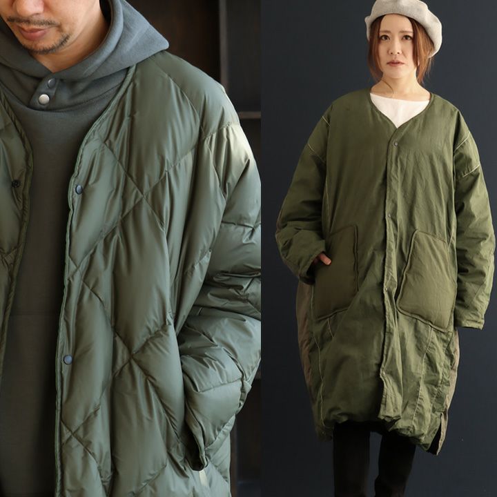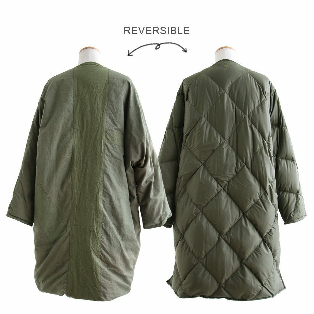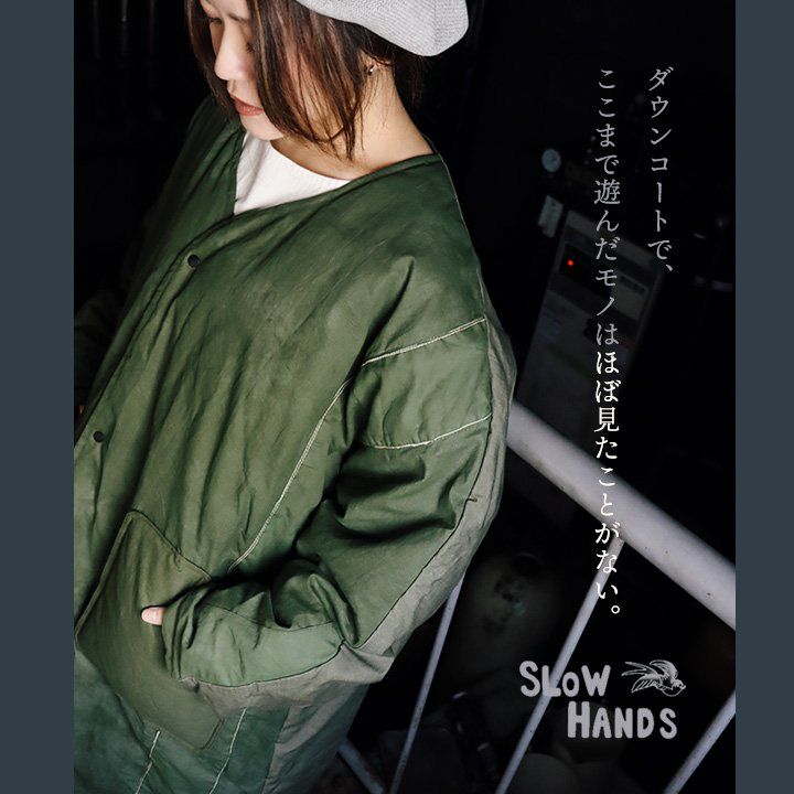 ダウンコートで、ここまで遊んだモノはほぼ見たことがない。 SLOW HANDS スローハンズ ダウン コート メンズ レディース リバーシブル キルティング パッチワーク インド軍 テント地 ナイロン ミリタリー 冬