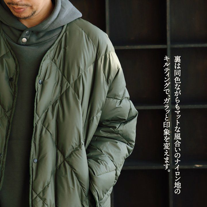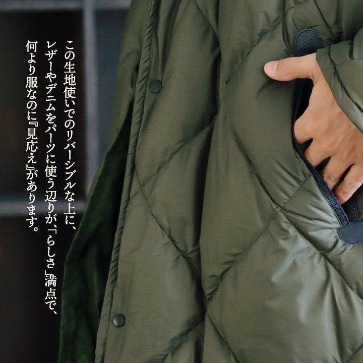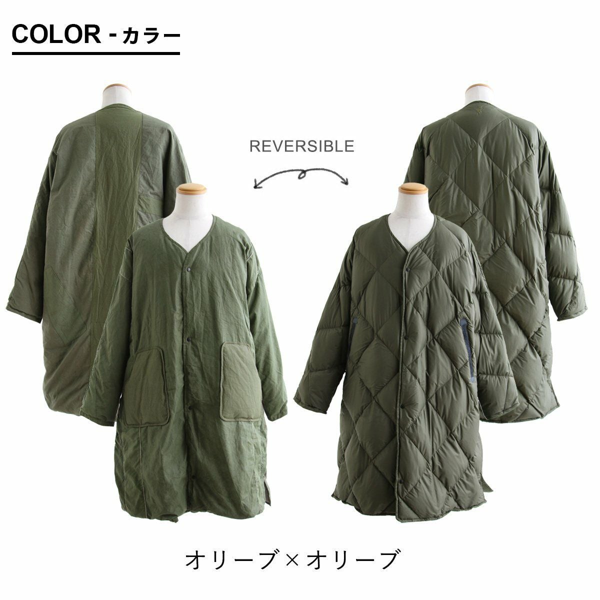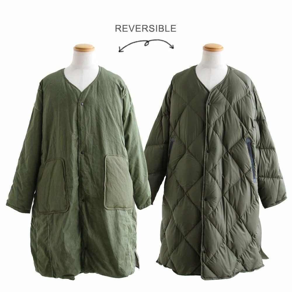 ダウンコートで、ここまで遊んだモノはほぼ見たことがない。 SLOW HANDS スローハンズ ダウン コート メンズ レディース リバーシブル キルティング パッチワーク インド軍 テント地 ナイロン ミリタリー 冬