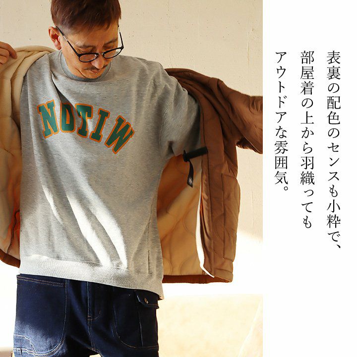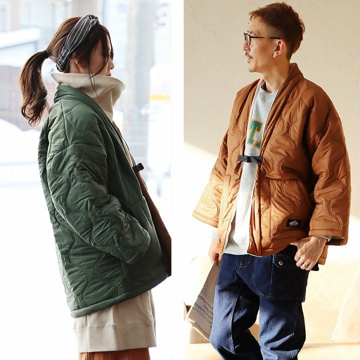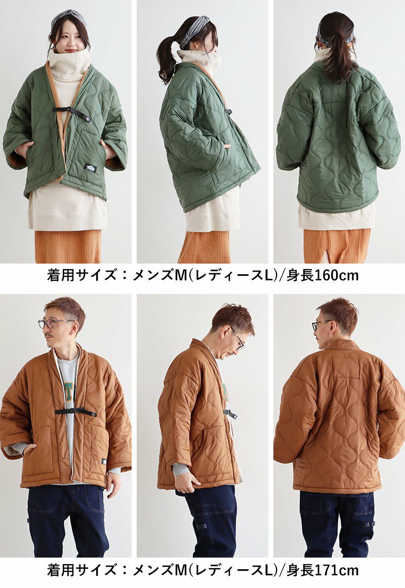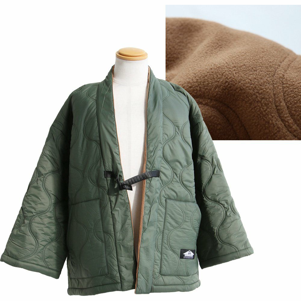 家で着るなら、昔懐かしい「アレ」がいちばん暖かくて便利。 ジャケット 中綿 キルティング メンズ レディース サーモライト はんてん 半纏型 ミニリップストップ ナイロン 配色 フリース 裏地 カイロポケット 秋 冬 おうち時間 軽い 暖かい