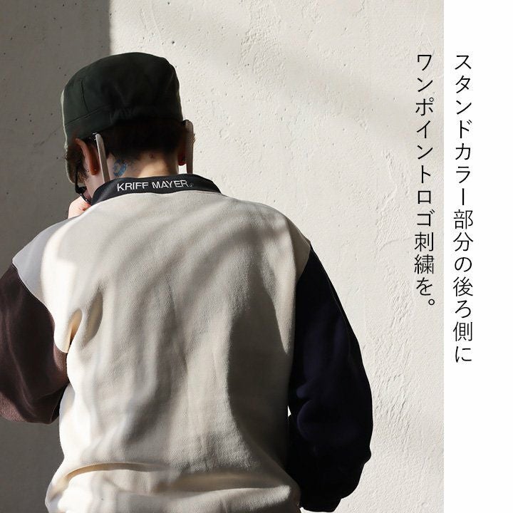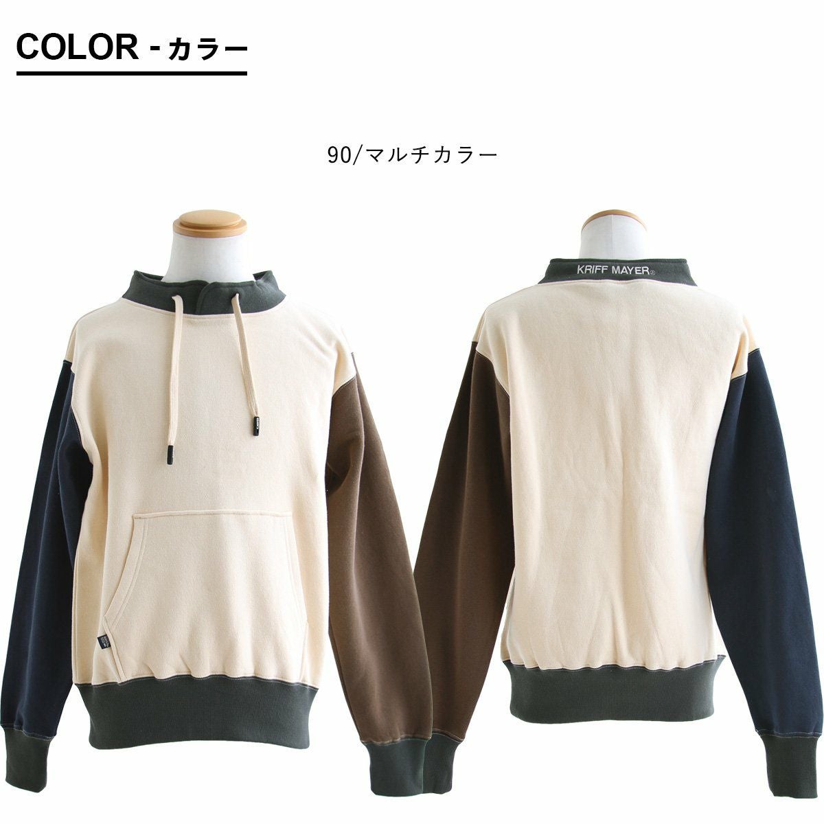 まるで「フードの無いプルパーカー」!? KRIFF MAYER クリフメイヤー トレーナー 長袖 メンズ レディース スタンドネック 肉厚 裏起毛 スウェット ロゴ 刺繍 カンガルーポケット ロングリブ めがね 落ちない 秋 冬
