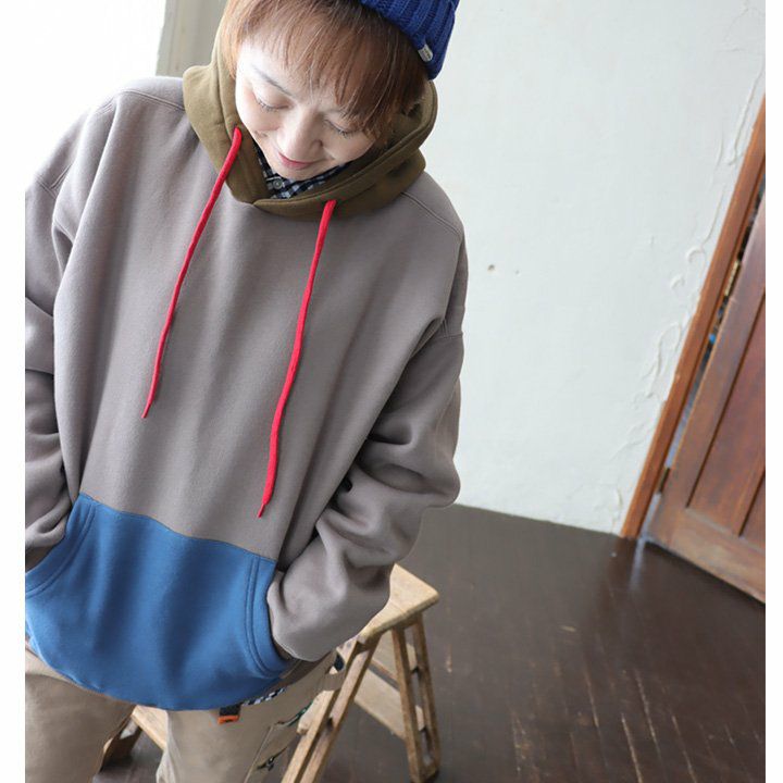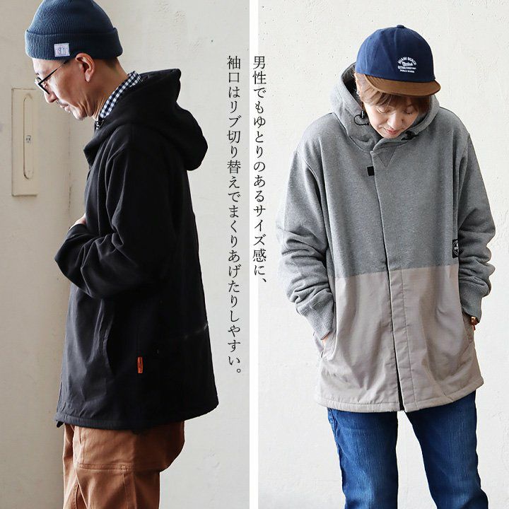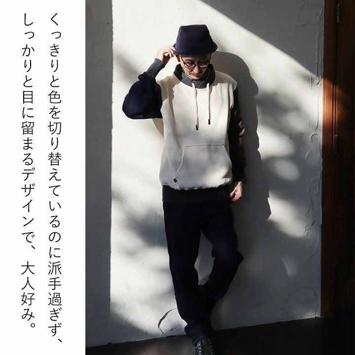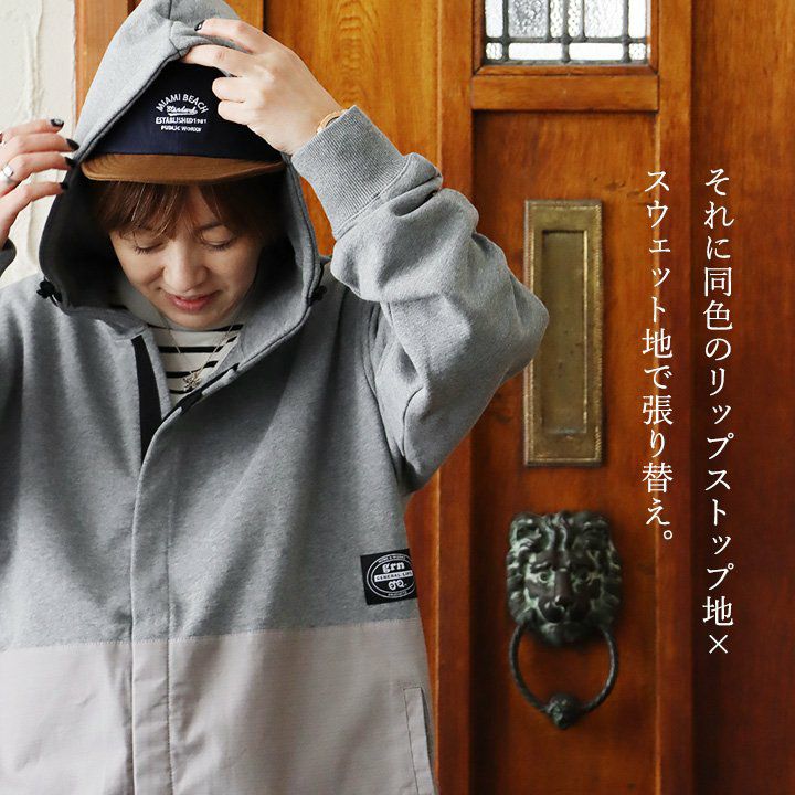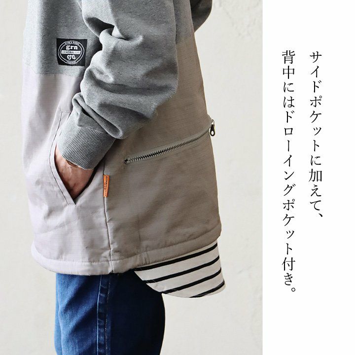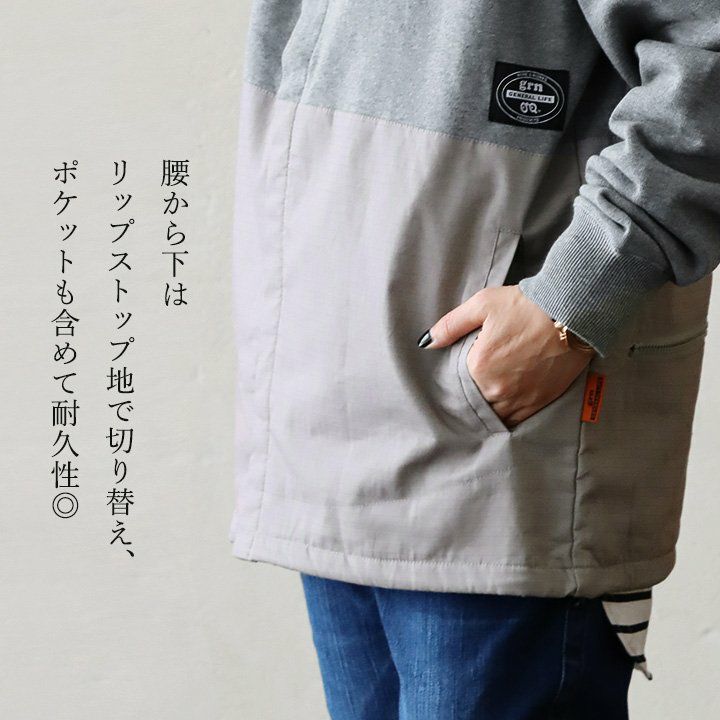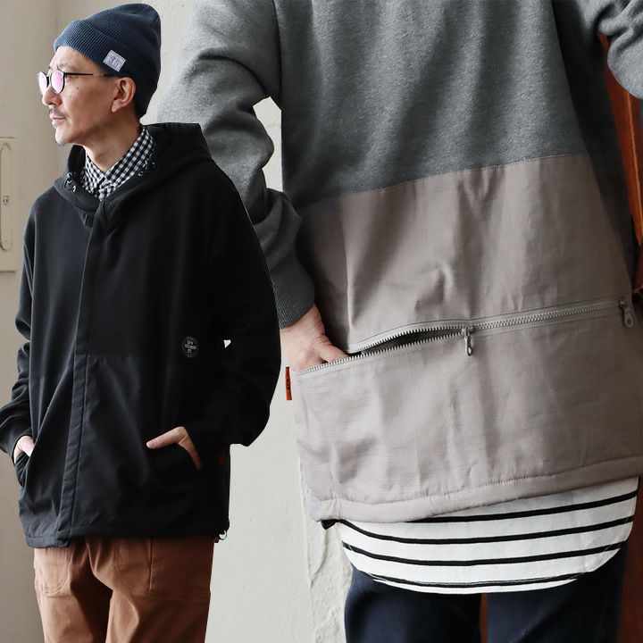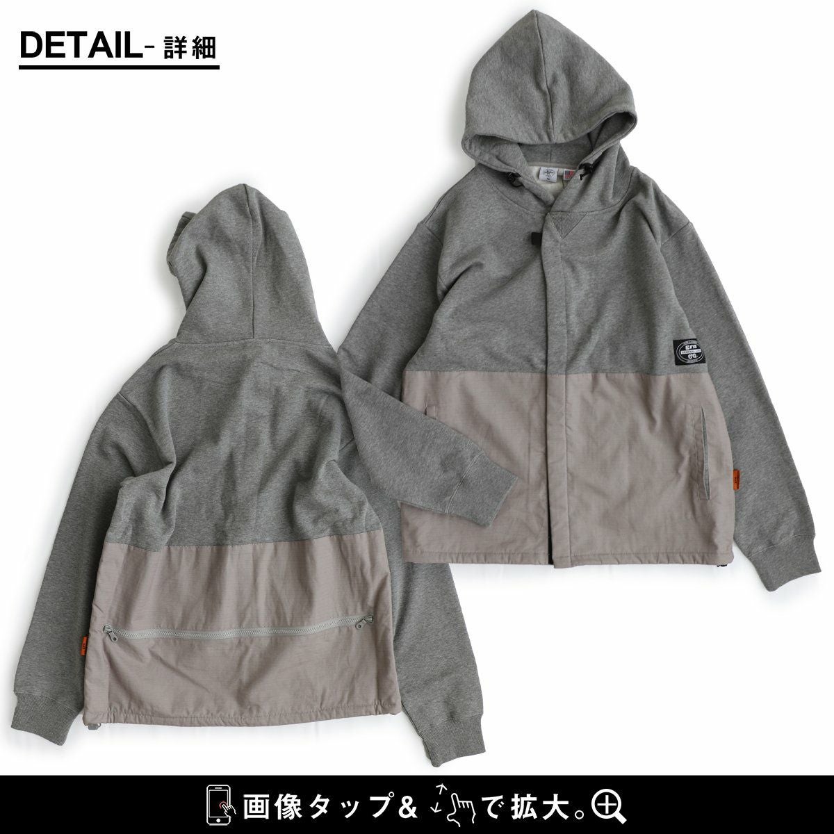 大:斬新で、目新しいスウェットパーカー。 パーカー スウェット メンズ レディース 異素材切り替え リップストップ 丈夫 ベルクロ ポケット付き ゆったり 大きいサイズ カジュアル アウトドア PATY