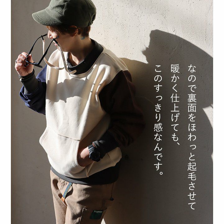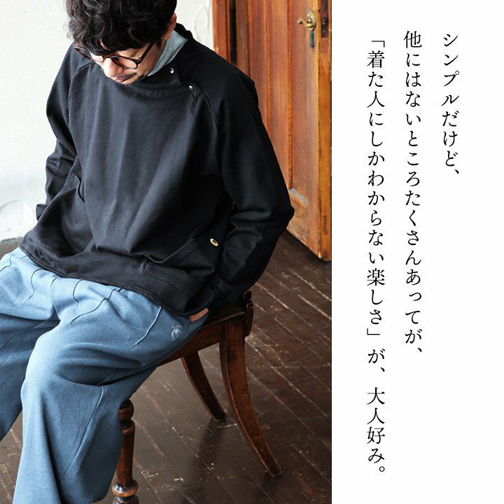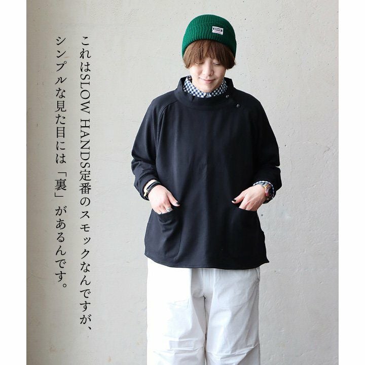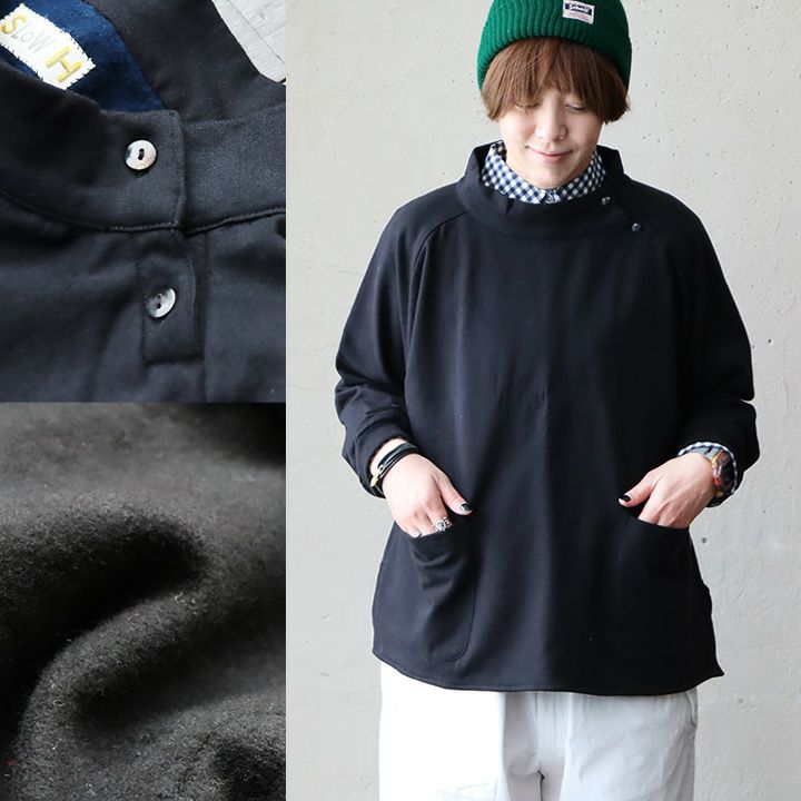 シンプルだけど、他にはないところが、大人好み。 SLOW HANDS スローハンズ トレーナー 長袖 メンズ レディース ハイネック ボタン 刺繍 ポケット 裏起毛 綿100% 厚手 柔らかい 軽い 秋 冬 シンプル お洒落