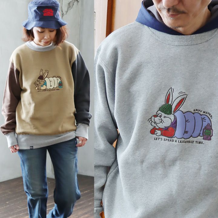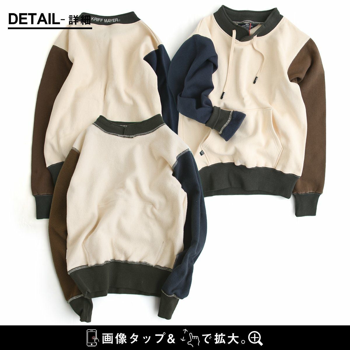 キャンプにも、普段着にも。 KRIFF MAYER クリフメイヤー スウェット トレーナー メンズ レディース クルーネック 綿100 コットン 裏起毛 プリント 刺繍 ワンポイント 配色切り替え 暖かい 伸縮性 秋 冬 カジュアル キャンプ PATY パティ