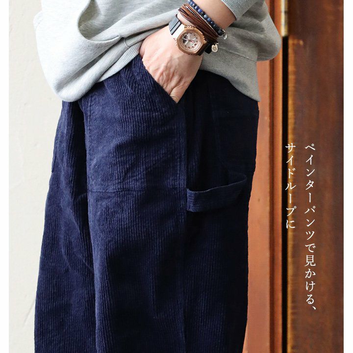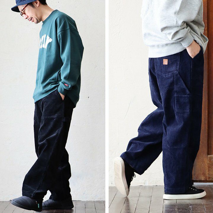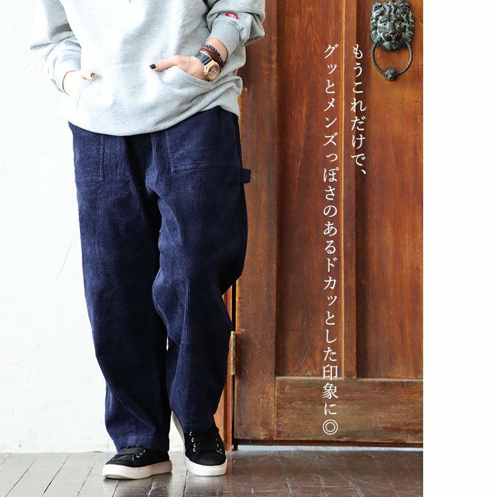 ラフでドカッと穿ける感じが絶妙。 パンツ ワイドパンツ ペインターパンツ メンズ レディース コーデュロイ コットン ウエストゴム ゆったり 体型カバー 大きいサイズ 秋 冬 カジュアル PATY