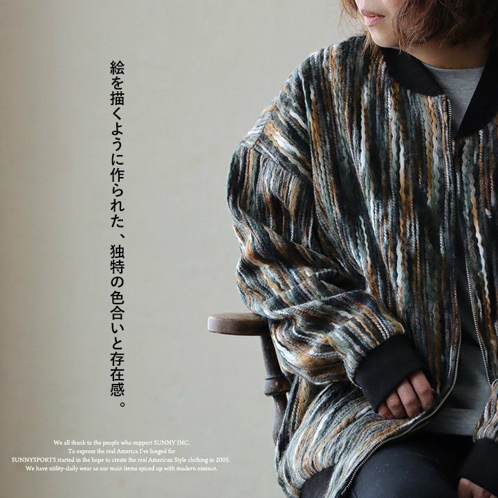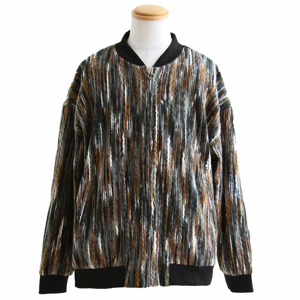 絵を描くように作られた、独特の色合いと存在感。 ブルゾン ニットブルゾン メンズ レディース アウター 総柄 レトロ アクリル 伸縮性 ゆったり 秋 冬 お洒落 カジュアル 秋 冬 PATY