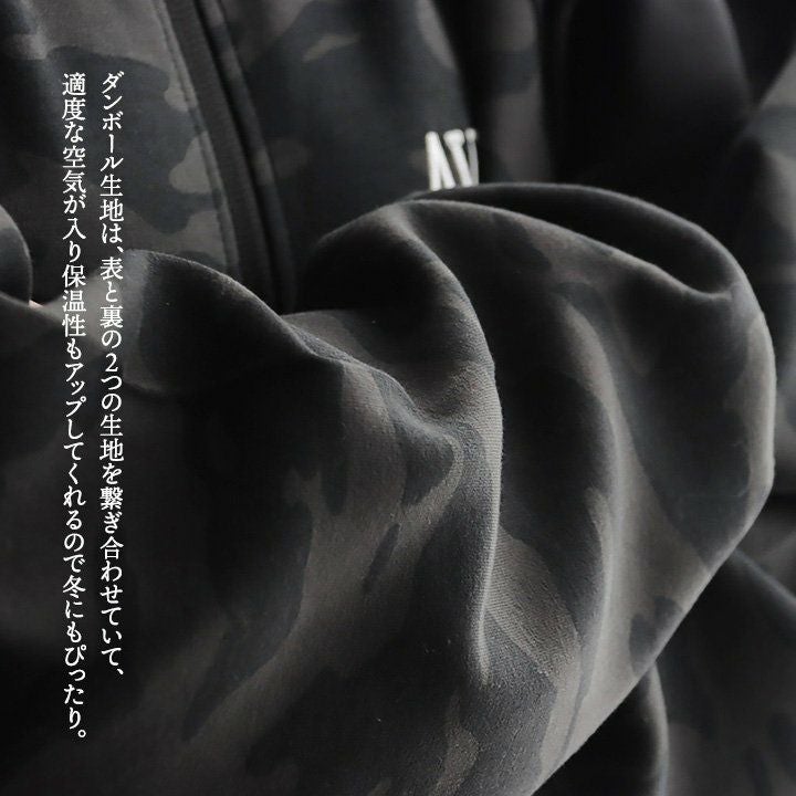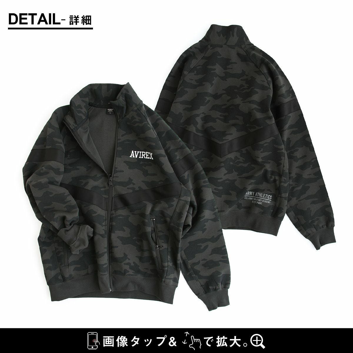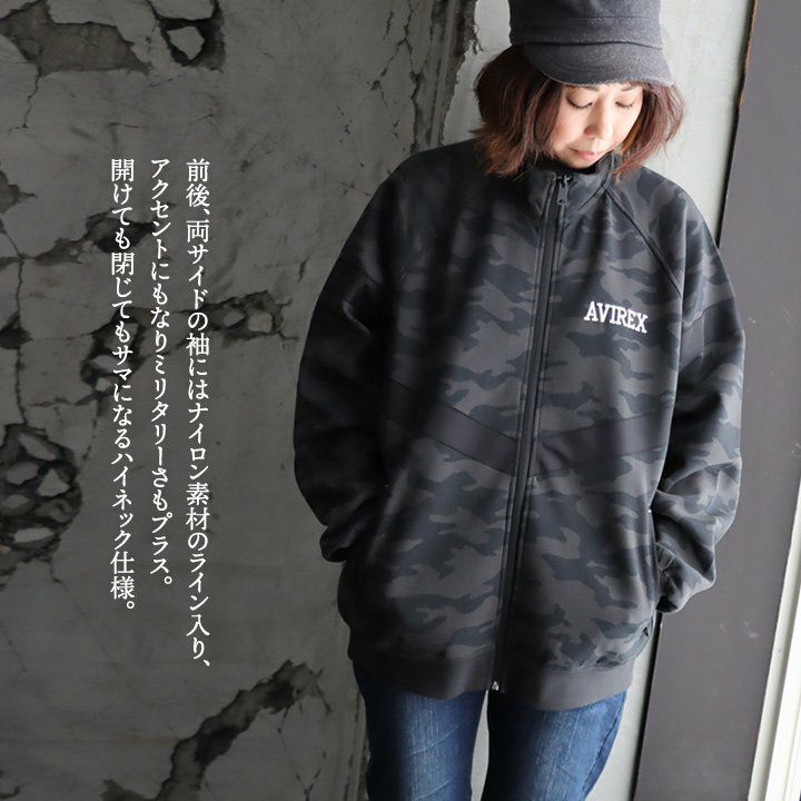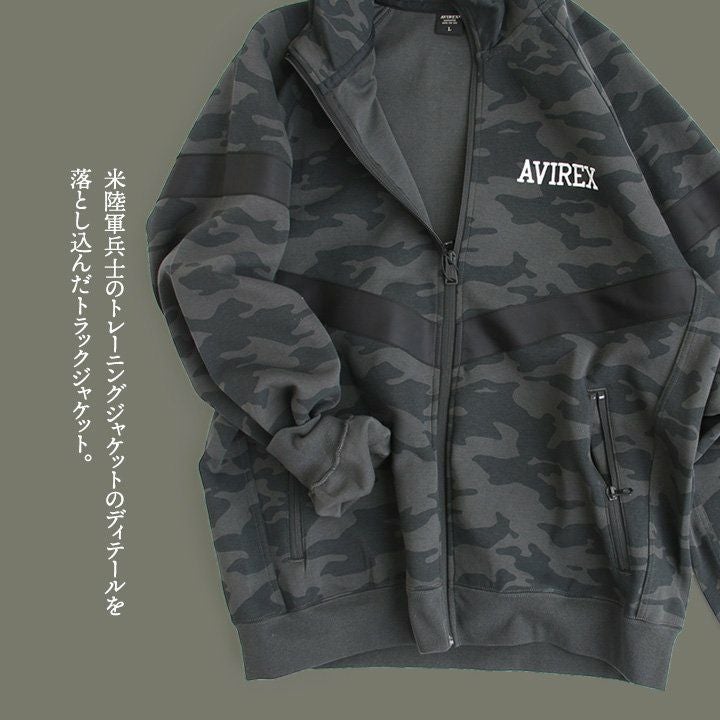 「渋いチョイス」が目を惹く。 AVIREX アヴィレックス トラックジャケット ジャケット メンズ レディース ハイネック 伸縮性 ストレッチ 迷彩 カモ柄 刺繍 プリント しっかり生地 秋 冬 カジュアル PATY