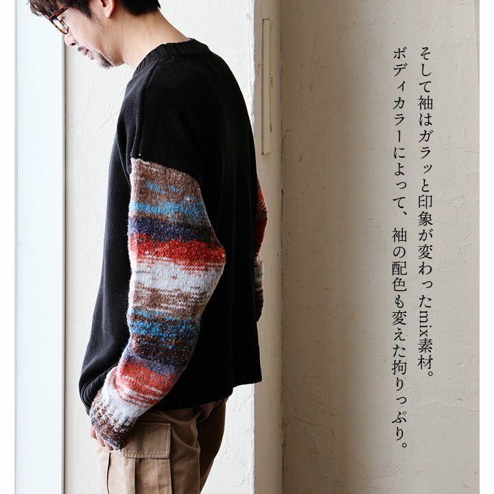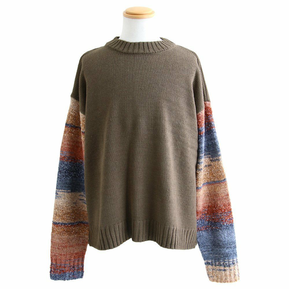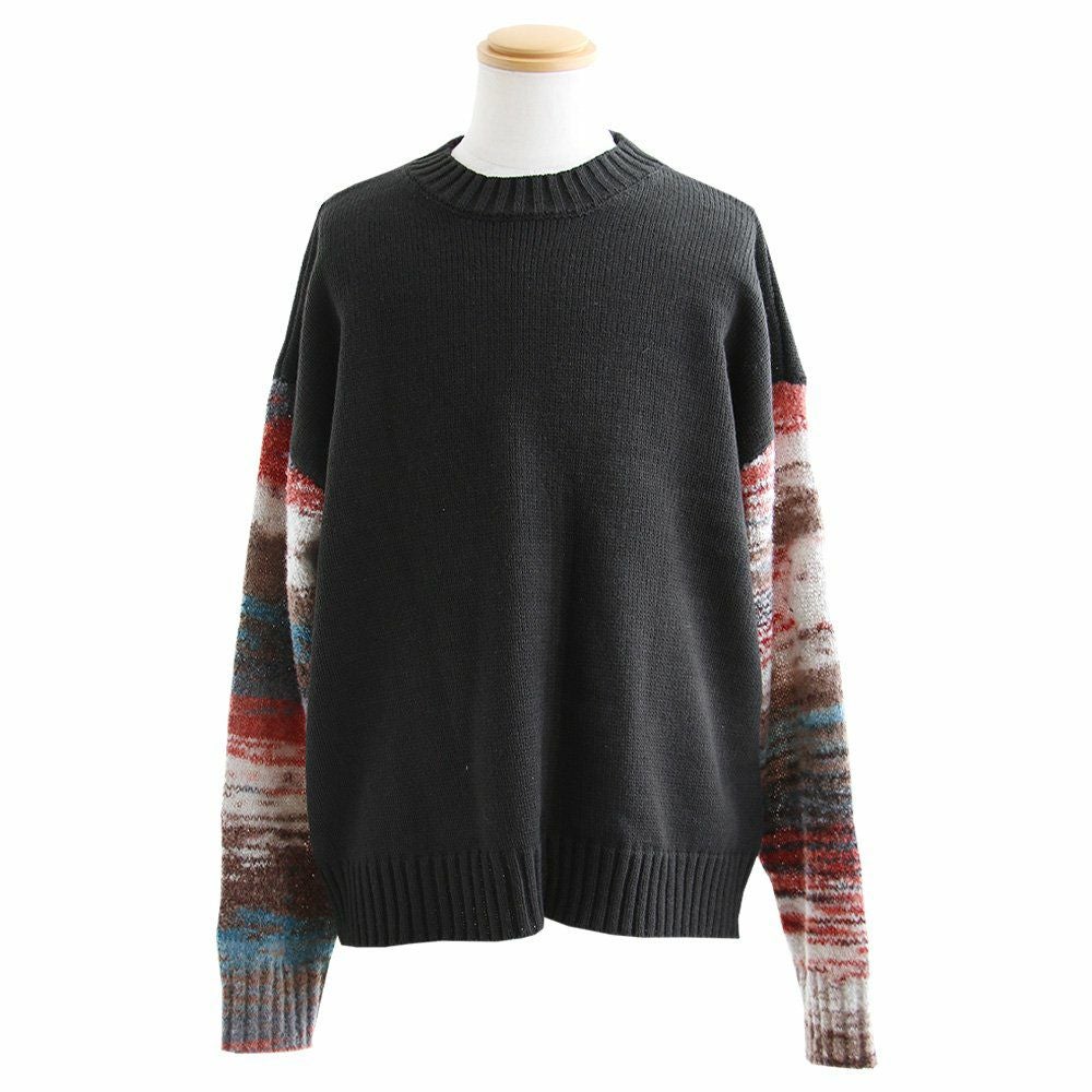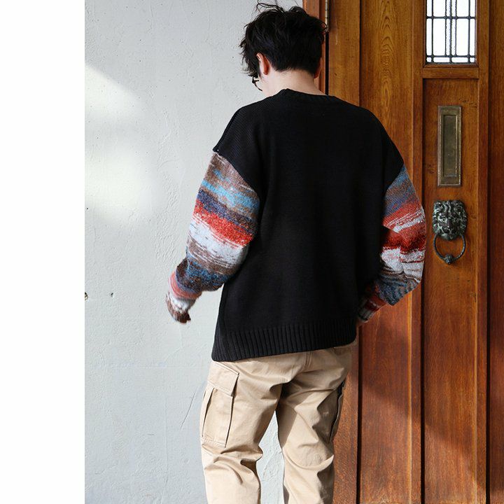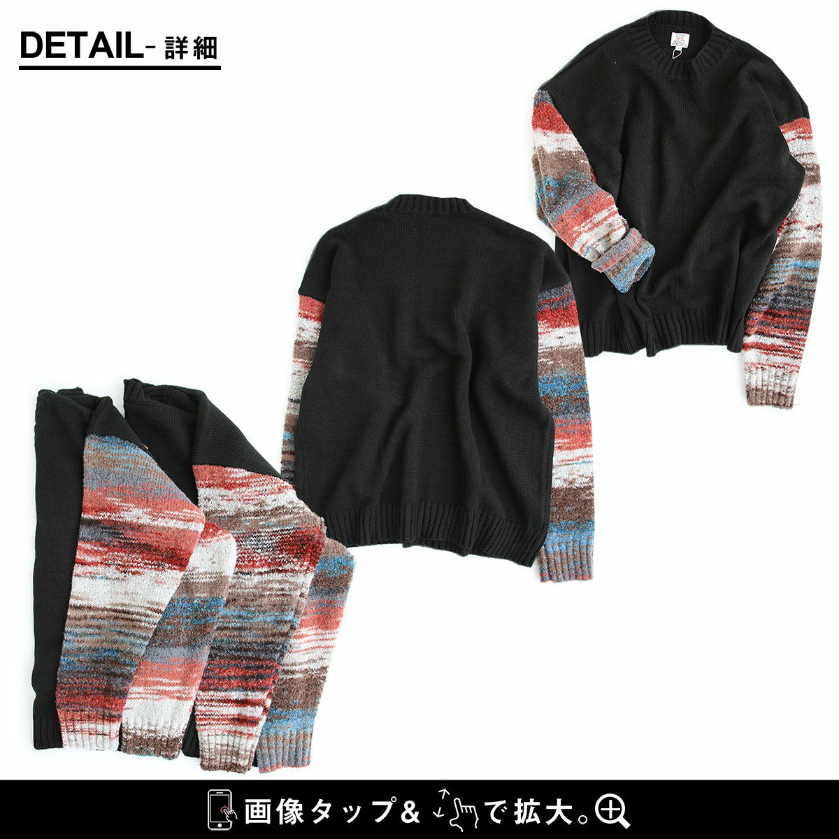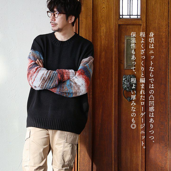 アウターを脱いでも、遊び心は忘れたくない。 ニット プルオーバー 長袖 メンズ レディース 異素材切り替え 配色 グラデーション アクリル 大きいサイズ ゆったり 秋 冬 カジュアル パティ