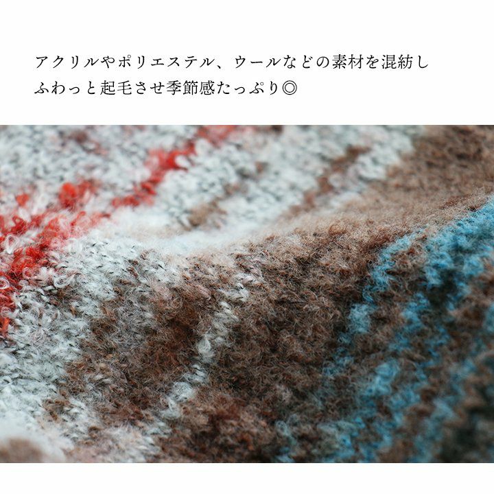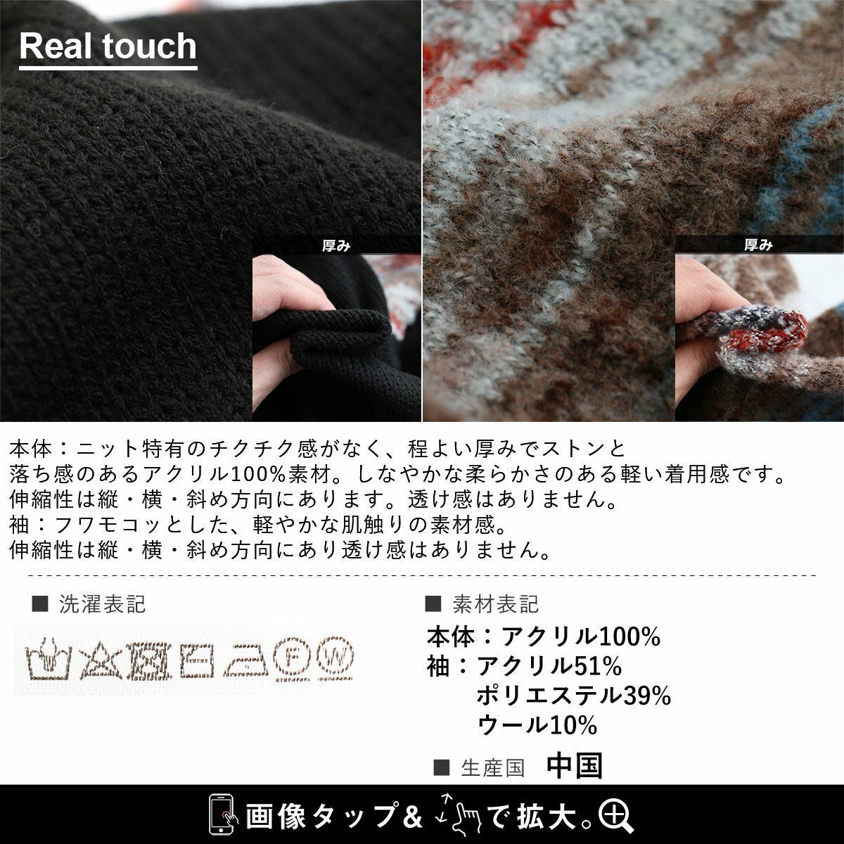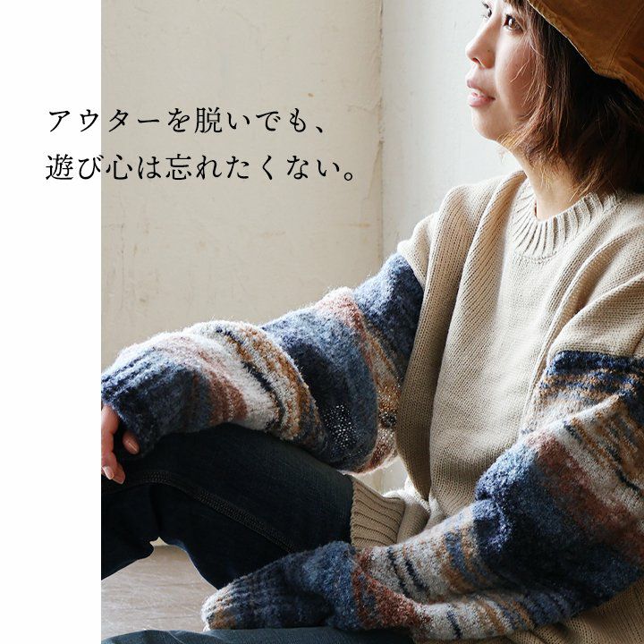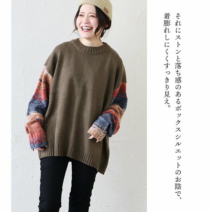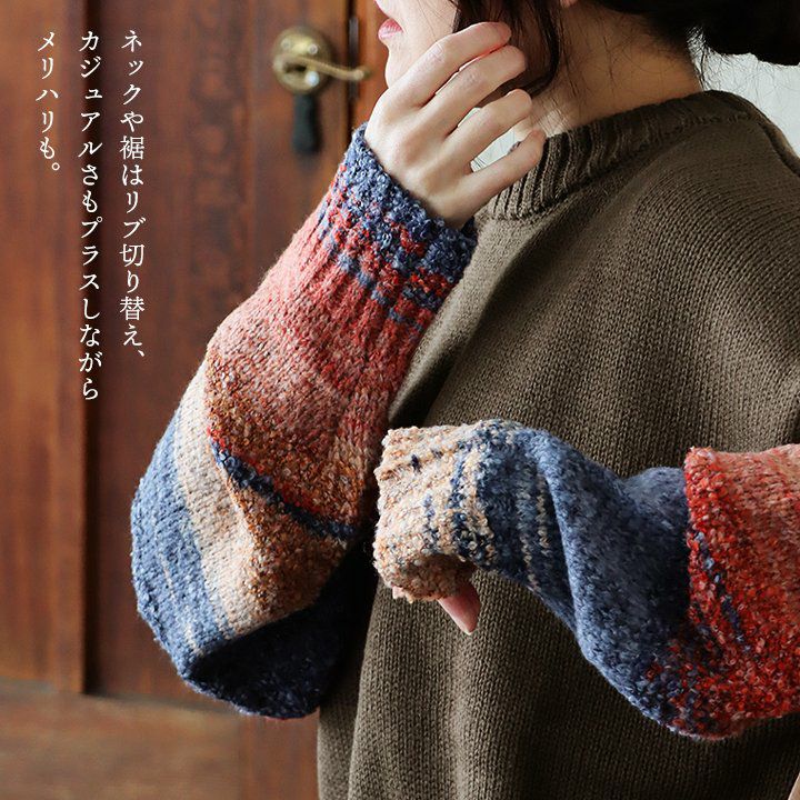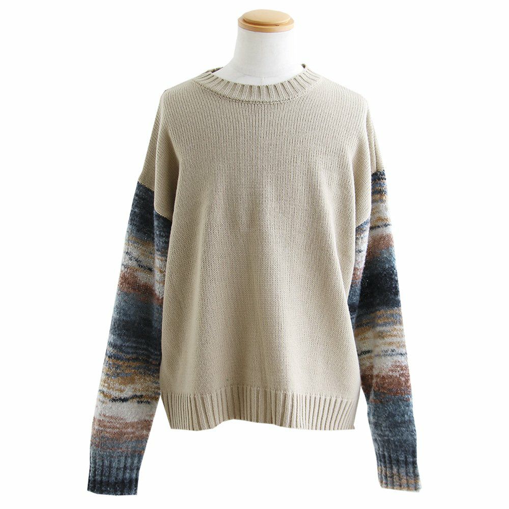 アウターを脱いでも、遊び心は忘れたくない。 ニット プルオーバー 長袖 メンズ レディース 異素材切り替え 配色 グラデーション アクリル 大きいサイズ ゆったり 秋 冬 カジュアル パティ