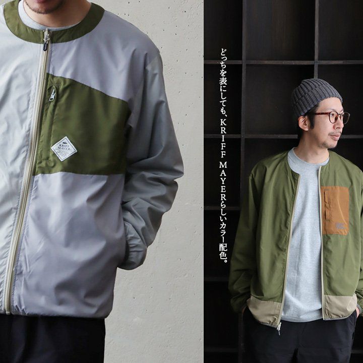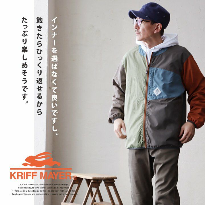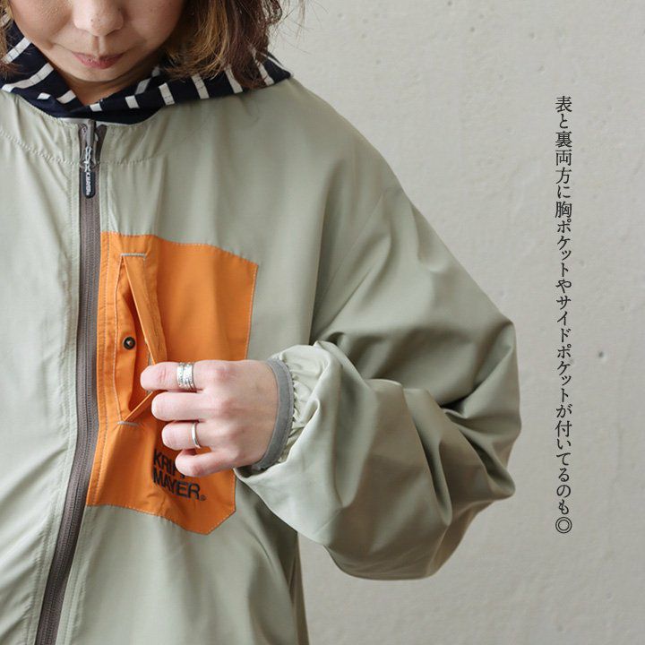 フード付きも着れるし、飽きたらひっくり返せばいいんです。 KRIFF MAYER クリフメイヤー アウター ジャケット ひっくりジャケット メンズ レディース ノーカラーネック リバーシブル ポリエステル ナイロン 薄手 軽い 防風 丈夫 しっかり生地 大きいサイズ ゆったり カジュアル アウトドア PATY パティ