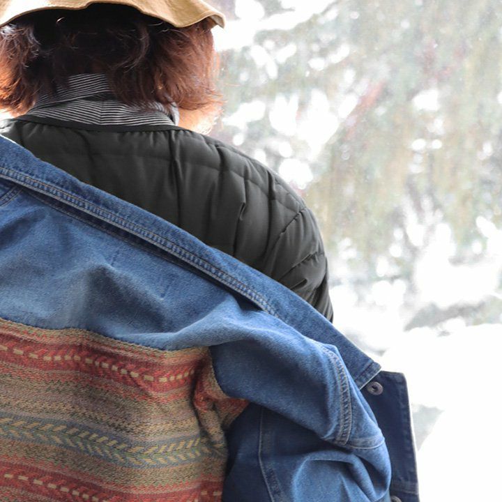 「家族にも着せてあげたい。」そんな想いが湧く心地良さ。 トレーナー 七分袖 半端袖 ワイドシルエット ハーフジップ 『ニット デニム × 裏毛 スウェット』 前後 異素材 切り替え 刺繍 胸ポケット ボーダー メンズ レディース 秋 冬 40代 50代 grn×PATY [ジーアルエヌ×パティ]