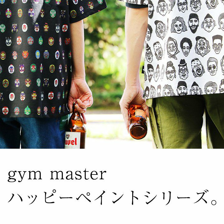夏は涼しくて、派手すぎるくらいイイ! 【メール便50】 gym master ジムマスター tシャツ 半袖 メンズ レディース 夏 吸水速乾 UVカット ドライタッチ ストレッチ 涼しい 軽い 薄手 紫外線カット クルーネック 総柄 派手 ハッピーペイント アウトドア キャンプ カジュアル パティ
