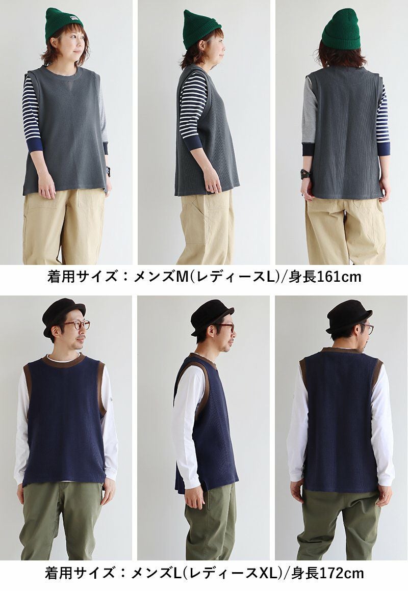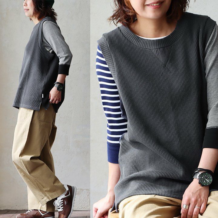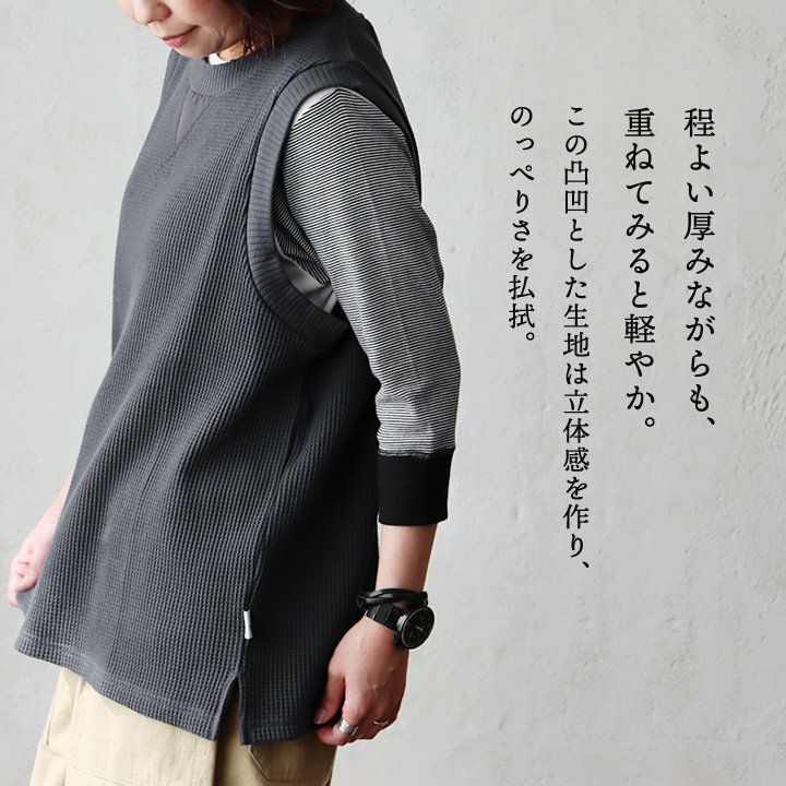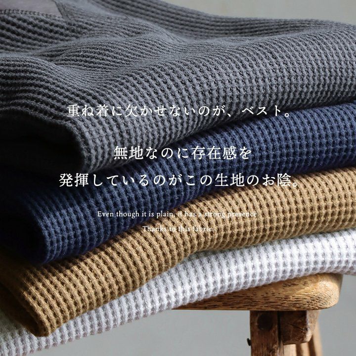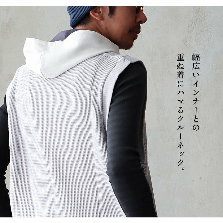 シンプルなのに、他とは少し違った雰囲気。 gym master ジムマスター ベスト ノースリーブ メンズ レディース クルーネック 重ね着 レイヤード ワッフル コットン 伸縮性 軽い ゆったり 大きいサイズ カジュアル 春 秋 冬 パティ