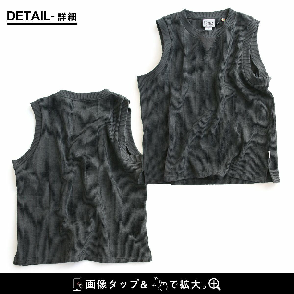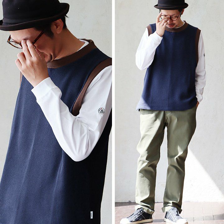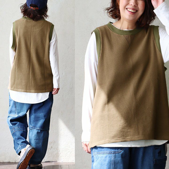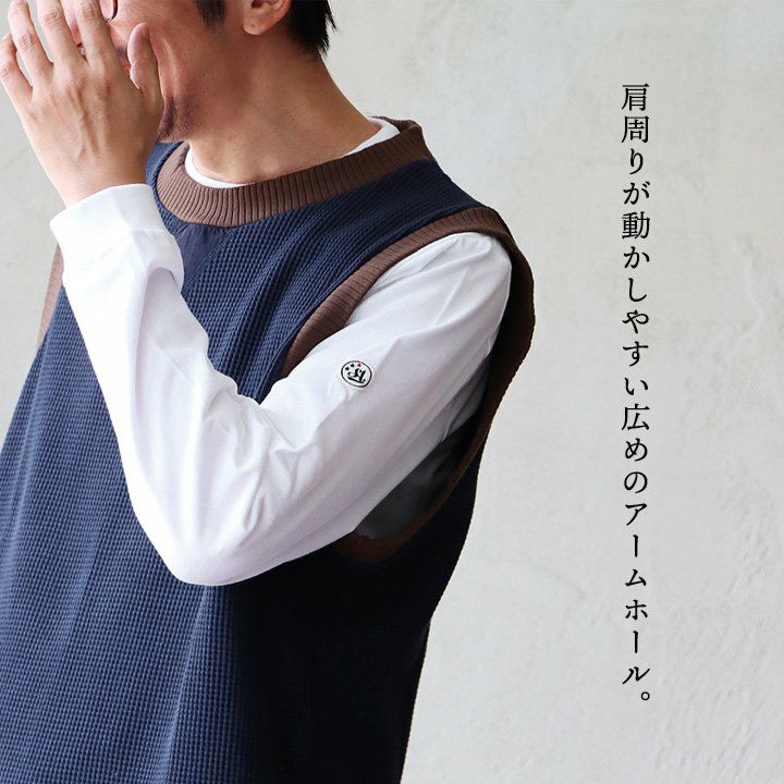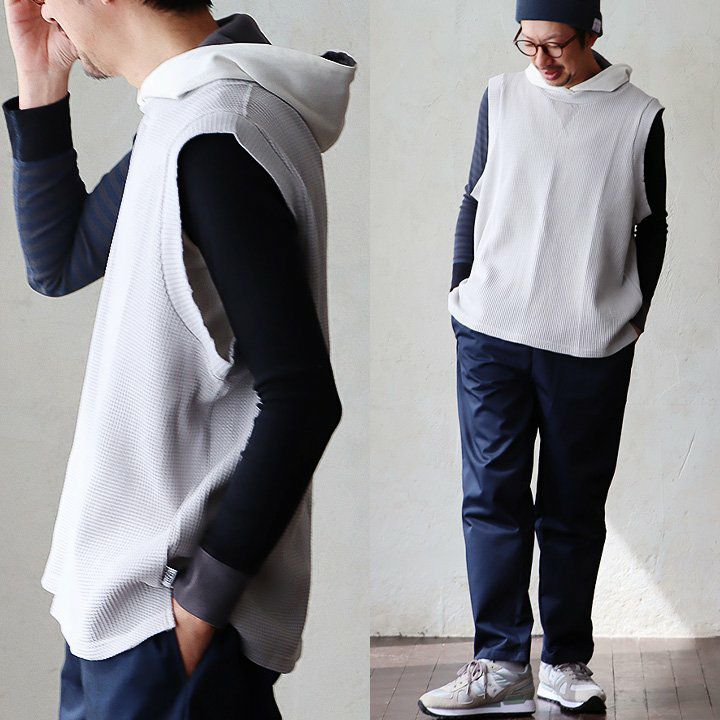 シンプルなのに、他とは少し違った雰囲気。 gym master ジムマスター ベスト ノースリーブ メンズ レディース クルーネック 重ね着 レイヤード ワッフル コットン 伸縮性 軽い ゆったり 大きいサイズ カジュアル 春 秋 冬 パティ