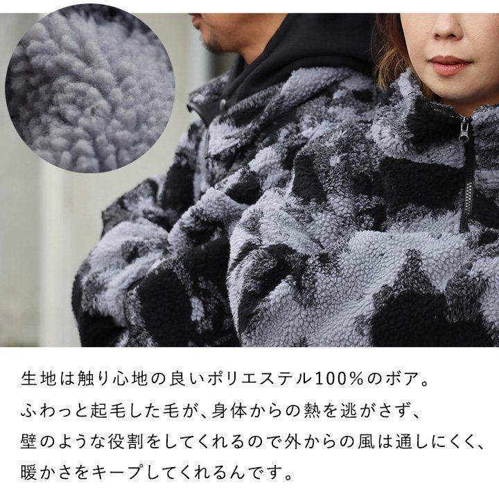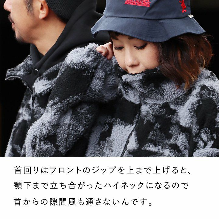 柄は柄でも、「渋みのある柄」だったらどうでしょう? アウター ジャケット ブルゾン メンズ レディース ハイネック 迷彩 カモ柄 ポリエステル100% 通気性 ムレにくい 暖かい 防寒 秋 冬 ゆったり 大きいサイズ カジュアル ユニセックス メンズライク PATY パティ
