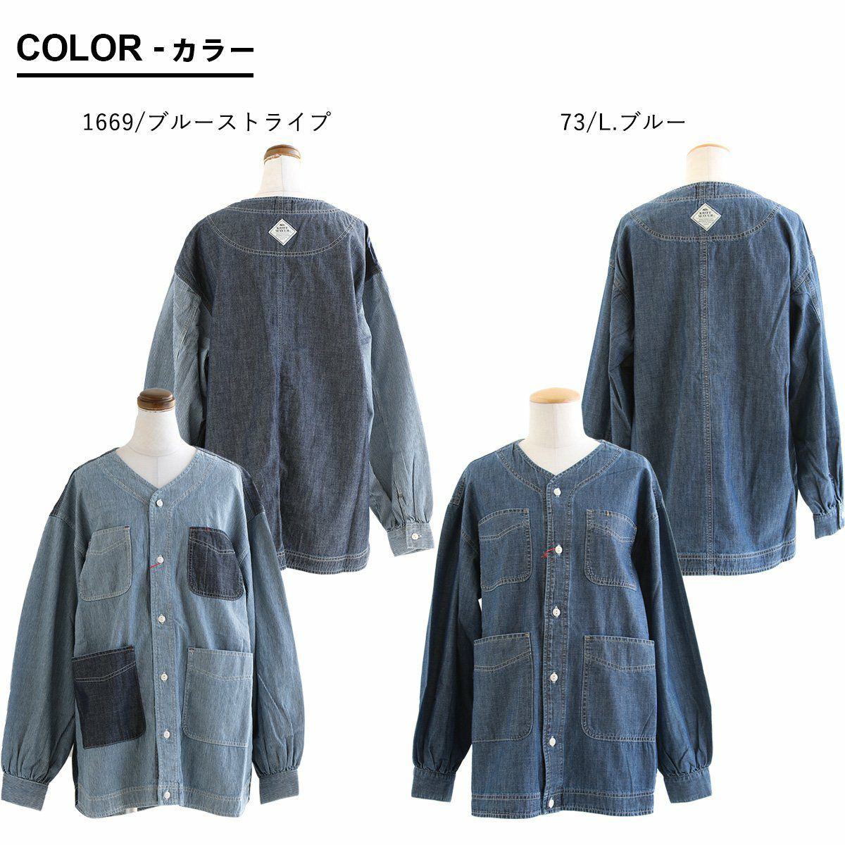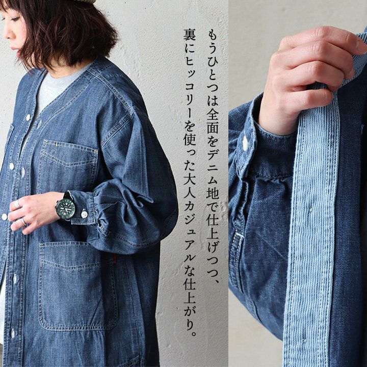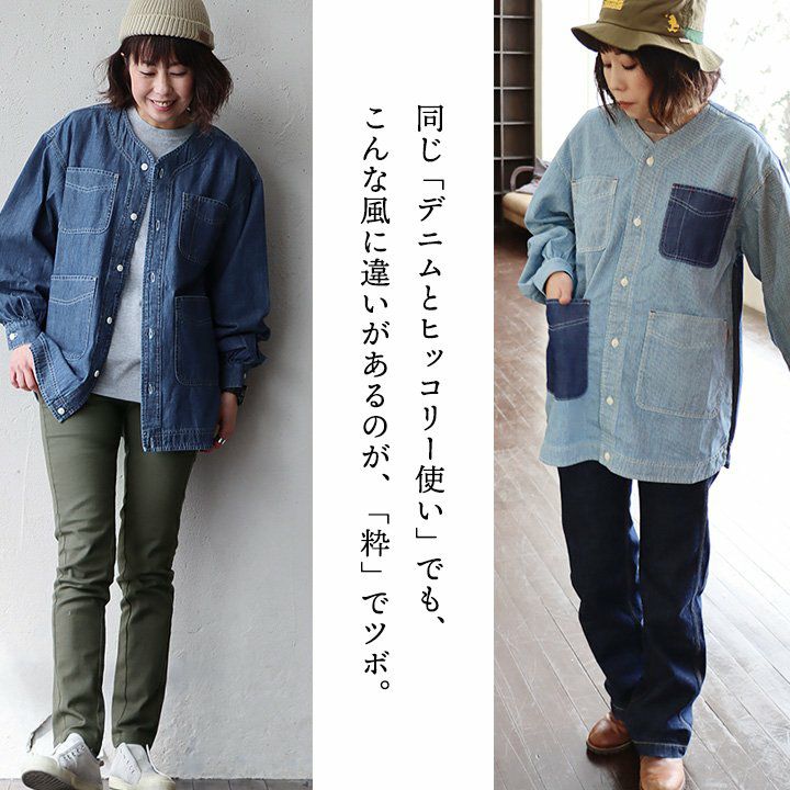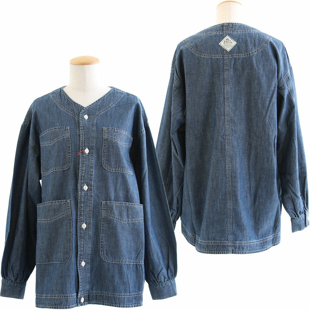 ヒッコリーとデニムの「粋」な使い方がツボ。 KRIFF MAYER クリフメイヤー カバーオール シャツ デニムシャツ レディース Vネック 切り替え リメイク風 ヒッコリー ストライプ デニム 綿100% しっかり生地 ポケット付き 春 カジュアル ヴィンテージ アメカジ パティ