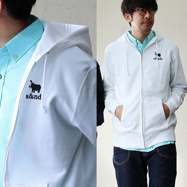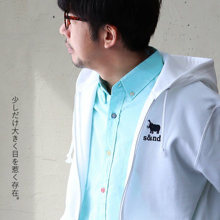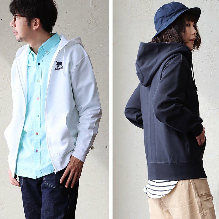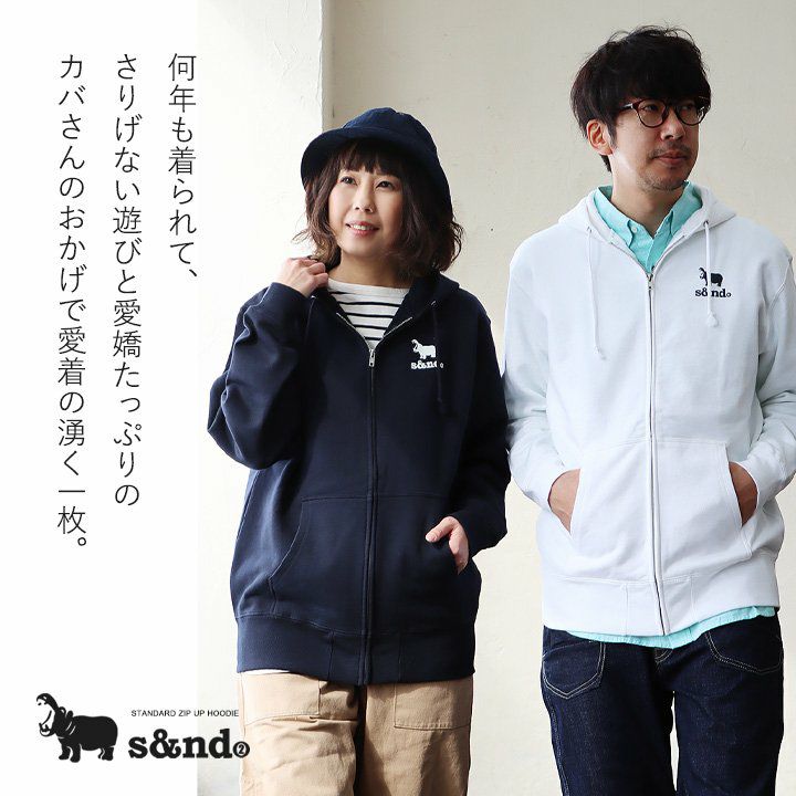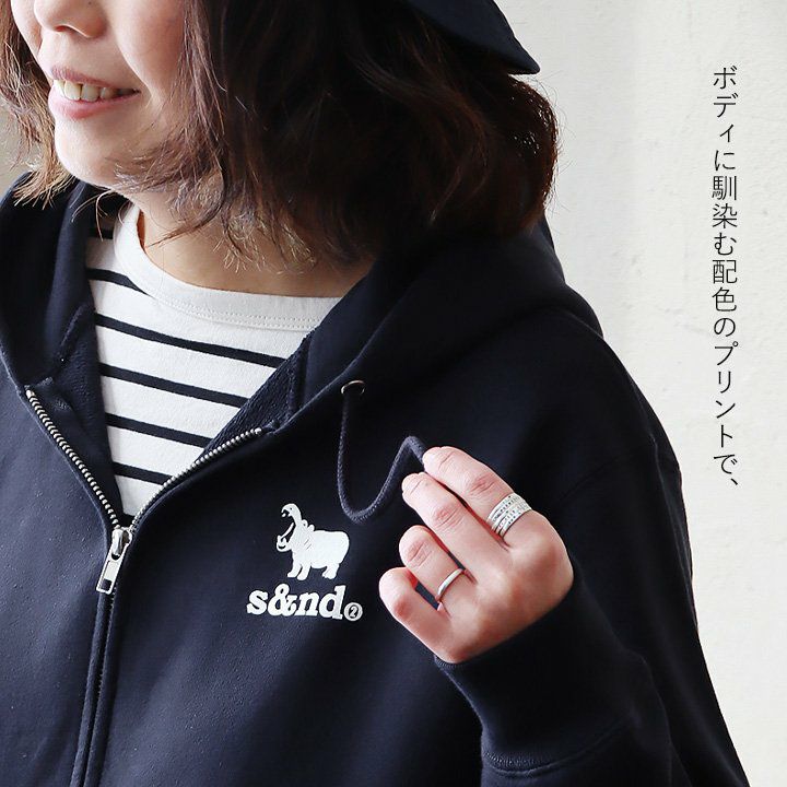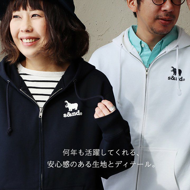 何年も活躍してくれる、安心感のある生地とディテール。 s&nd セカンド パーカー ジップパーカー スウェット 長袖 メンズ レディース ワンポイント プリント カバ 綿100% 裏毛 日本製 国産 グレー しっかり生地 通気性 ストレッチ 伸縮性 カジュアル ユニセックス パティ