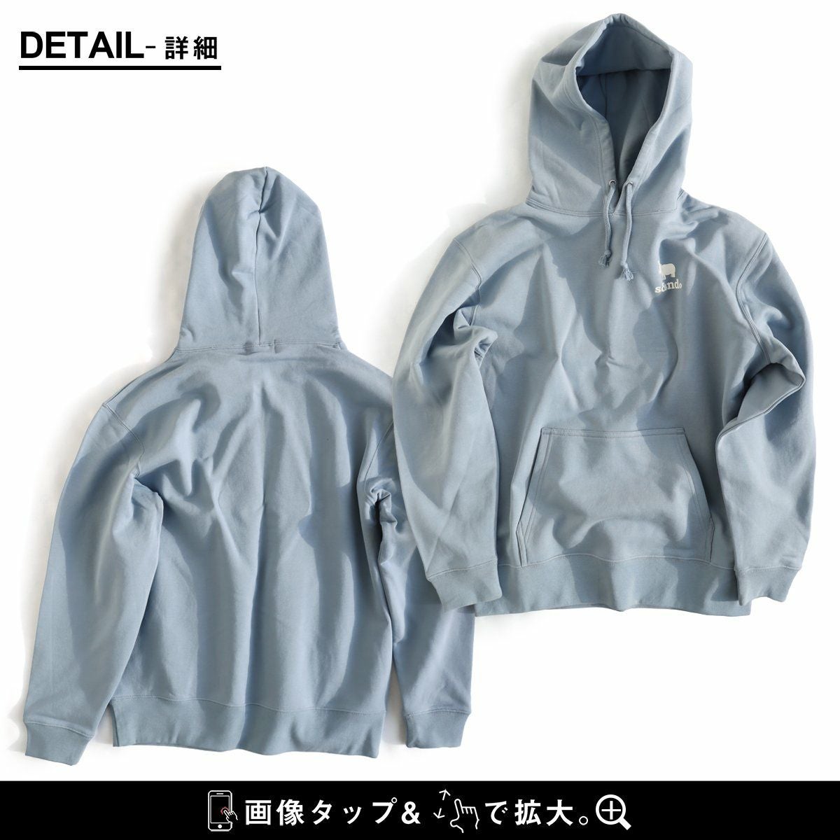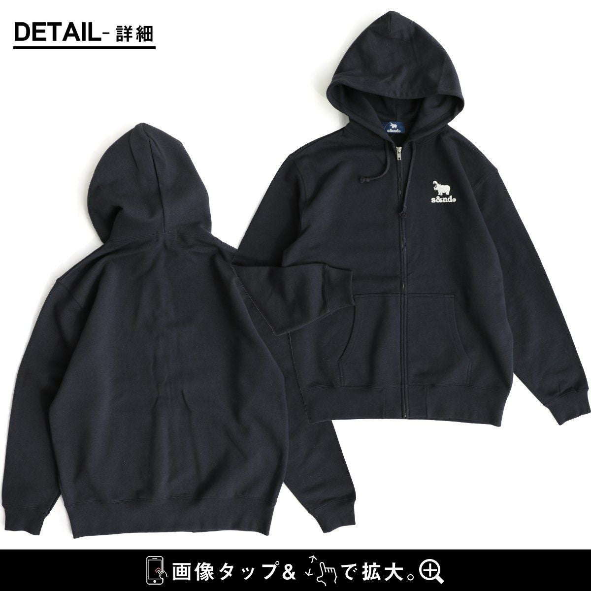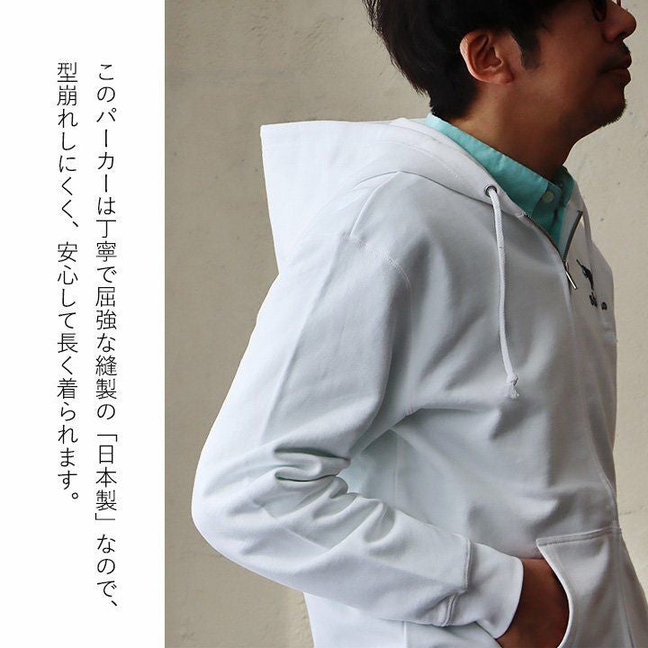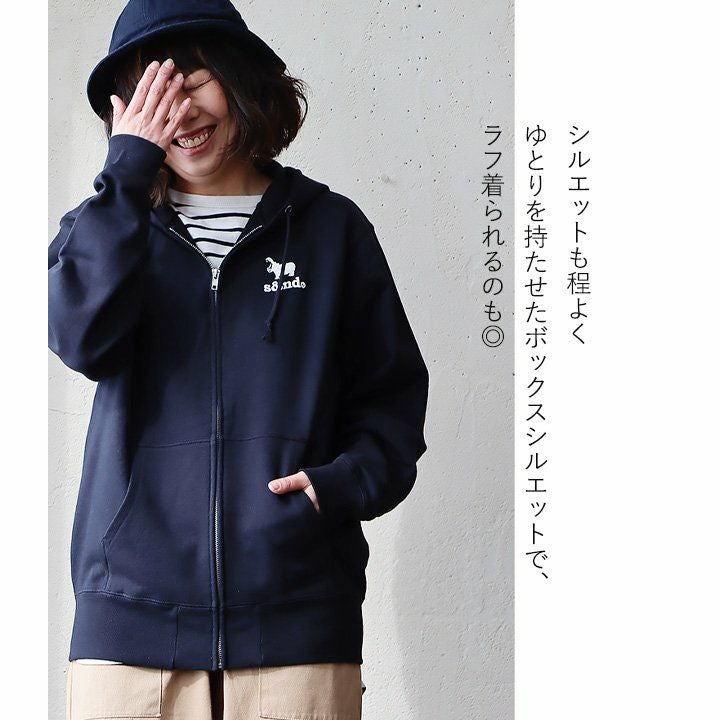 何年も活躍してくれる、安心感のある生地とディテール。 s&nd セカンド パーカー ジップパーカー スウェット 長袖 メンズ レディース ワンポイント プリント カバ 綿100% 裏毛 日本製 国産 グレー しっかり生地 通気性 ストレッチ 伸縮性 カジュアル ユニセックス パティ