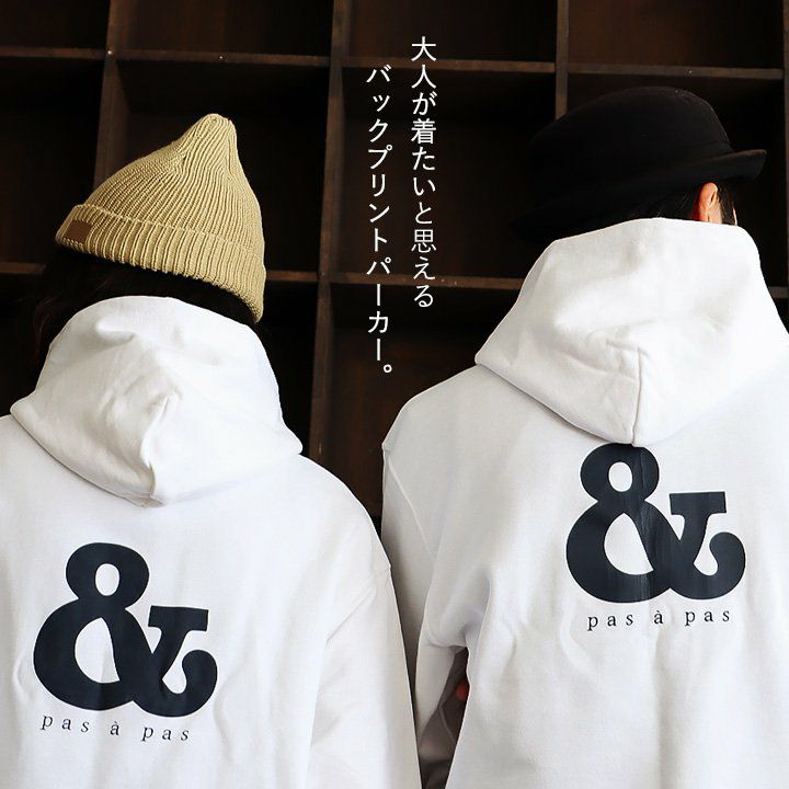 大人が着たいと思えるバックプリントパーカー。 パーカー スウェット 長袖 メンズ レディース ワンポイント ロゴ バックプリント 綿100% 裏毛 日本製 国産 ホワイト しっかり生地 通気性 ストレッチ 伸縮性 カジュアル ユニセックス PATY パティ s&nd セカンド