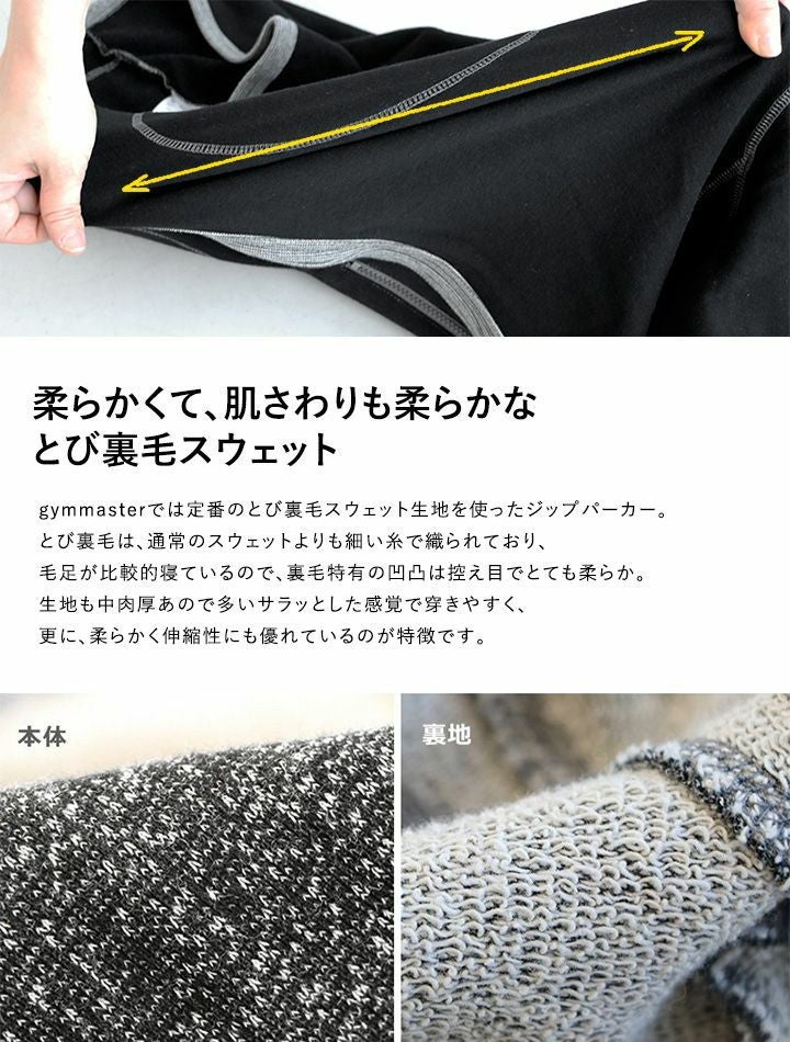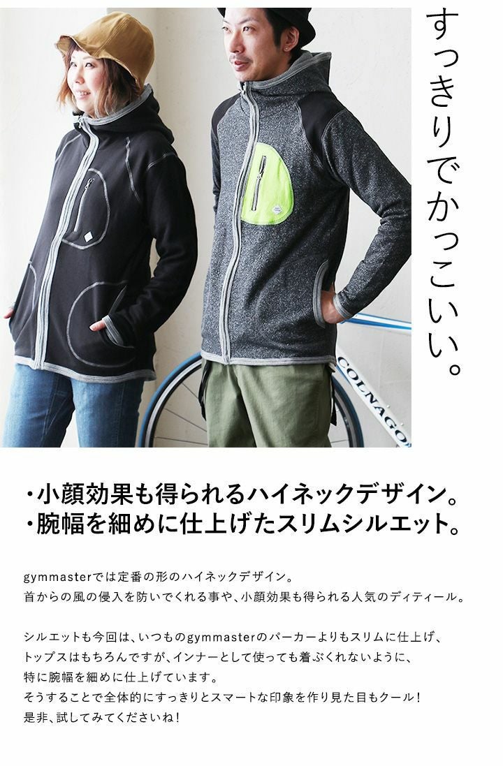 「すっきり」でも大丈夫。だって、こんなに伸びるんですよ。 パーカー ジップアップ ジップパーカー ハイネック とび裏毛 スウェット メンズ レディース トップス アウター カジュアル アウトドア スエット | ジップアップパーカー スウェットパーカー おしゃれ パーカ gym master [ジムマスター]