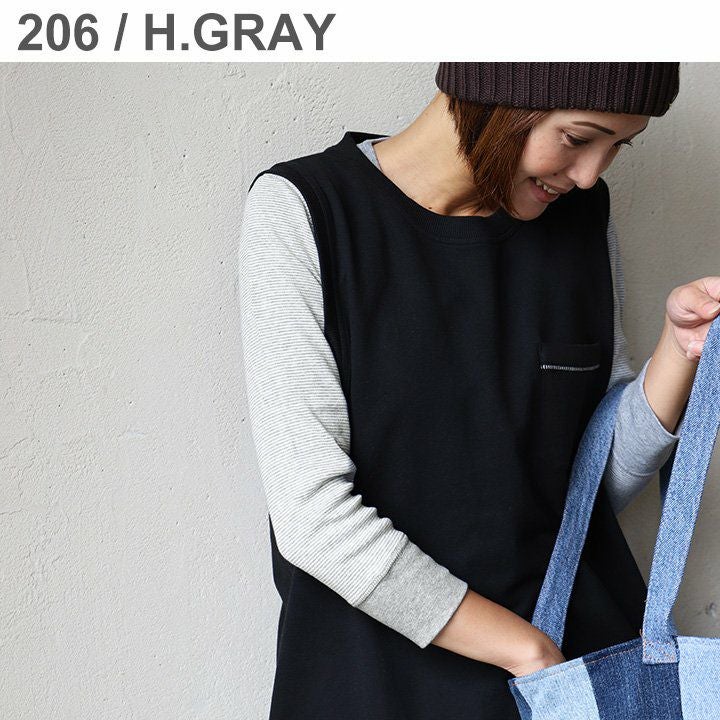 「あのカットソー」に「すぽっ」と着るだけで、この抜群のハマり具合。 【コラボ 限定】 ベスト プルオーバー スウェット 裏毛 クルーネック レディース ノースリーブ スエット ジレ 無地 重ね着 グレー 黒 ネイビー| カジュアル 春 春夏 春服 春物 トップス カットソー grn×PATY [ジーアルエヌ×パティ]