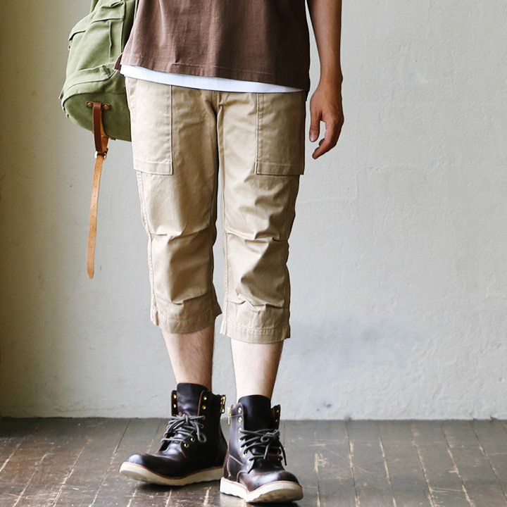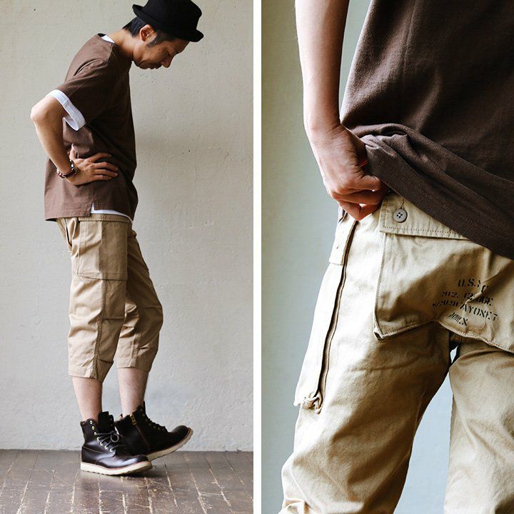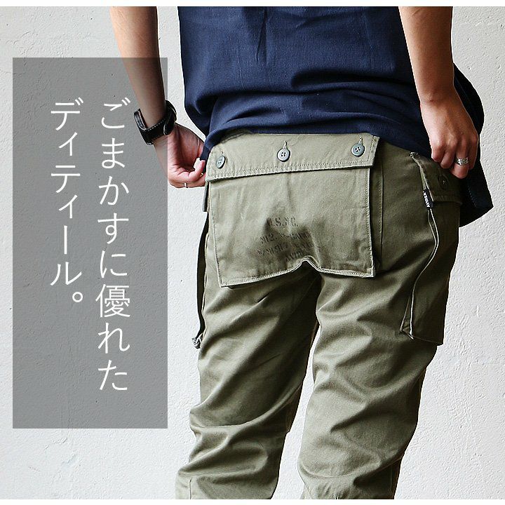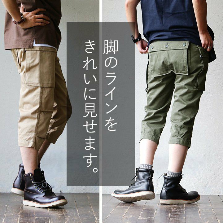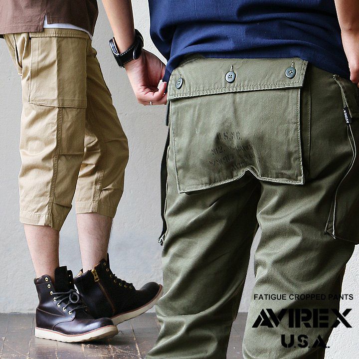 大きなフラップポケットで、気になるシルエットをカバー。 パンツ クロップド クロップドパンツ カーゴ カーゴパンツ プリント入り エアロカーゴ 高密度 チノクロス 綿100% メンズ レディース カジュアル ミリタリー 40代 50代 AVIREX [アヴィレックス]