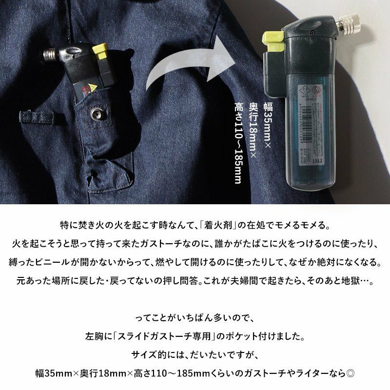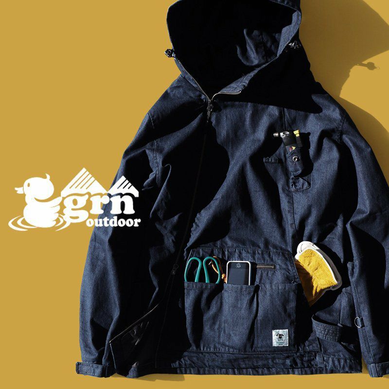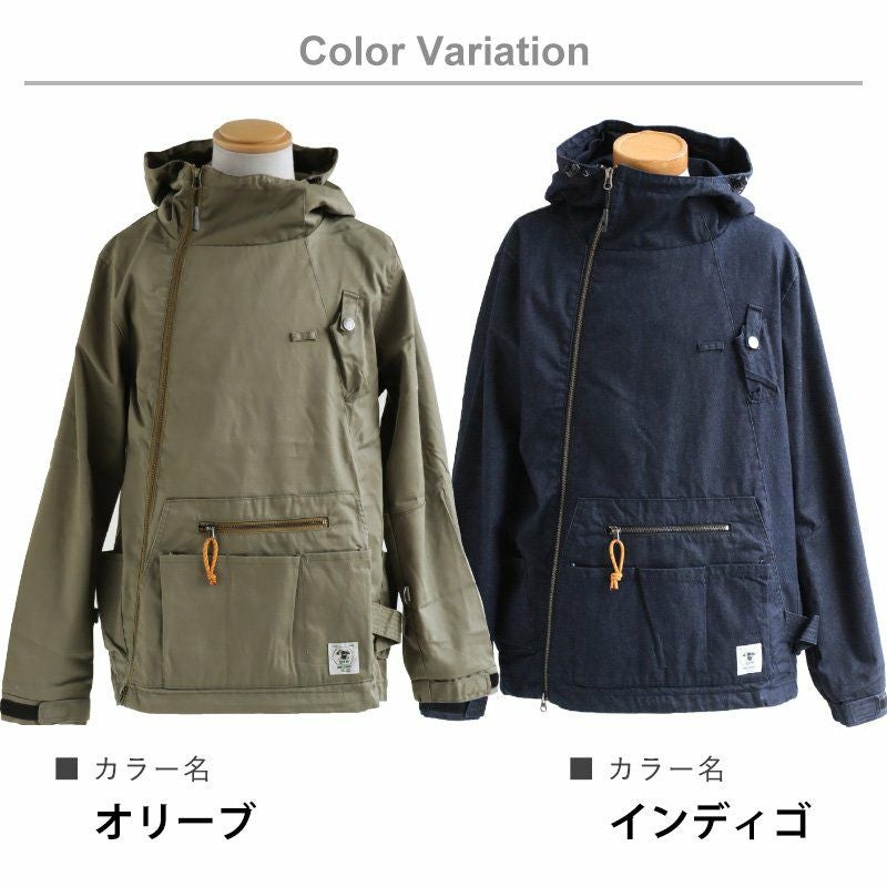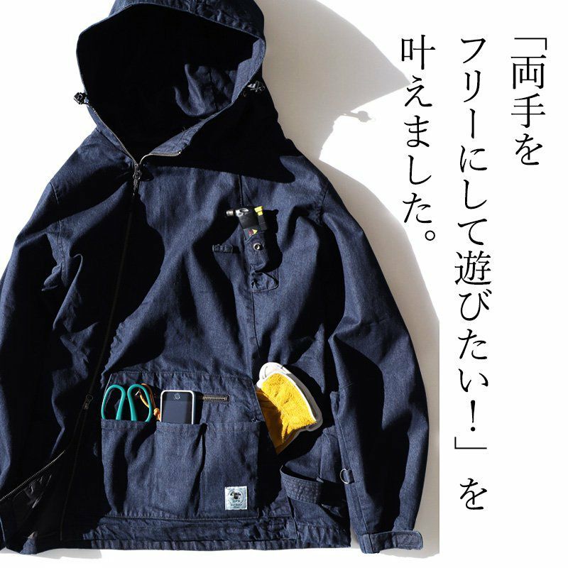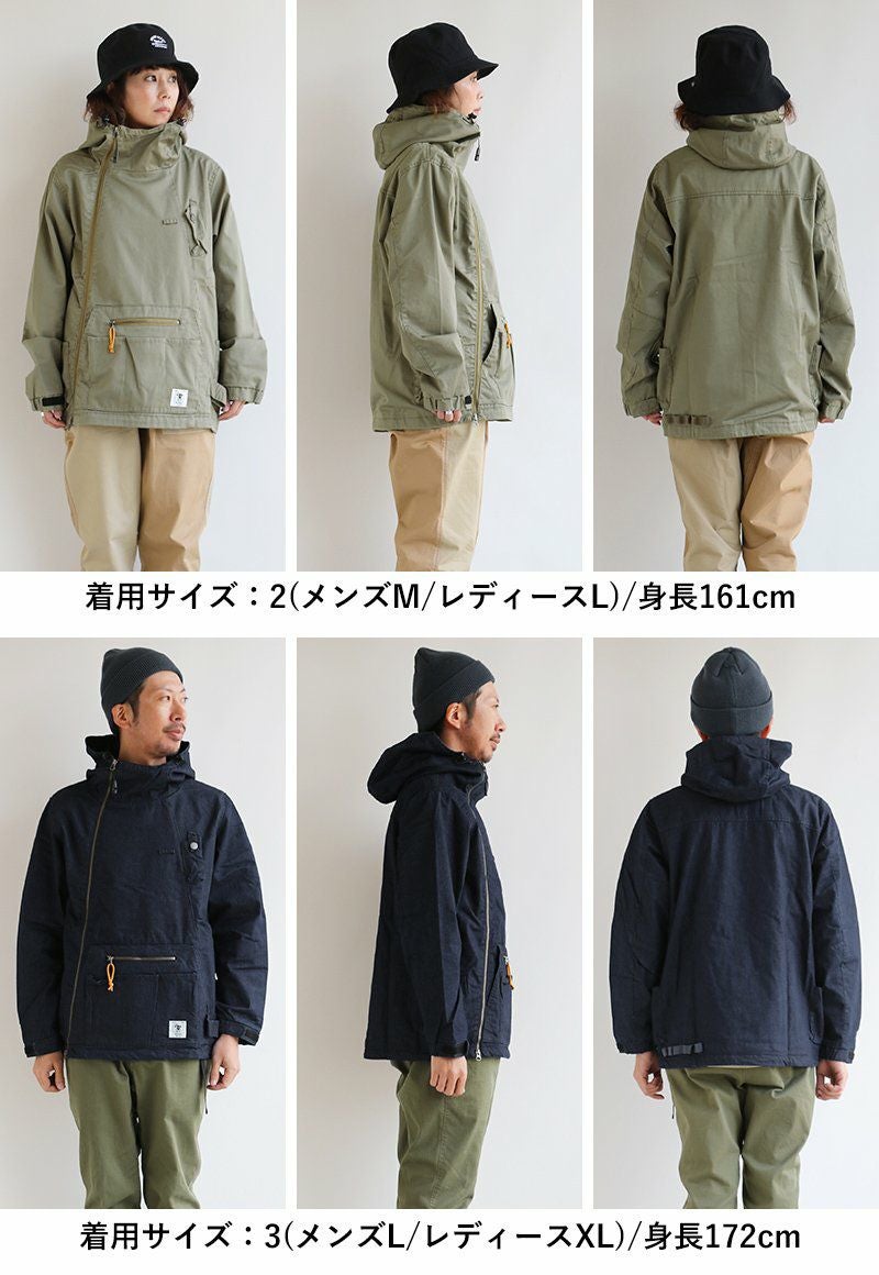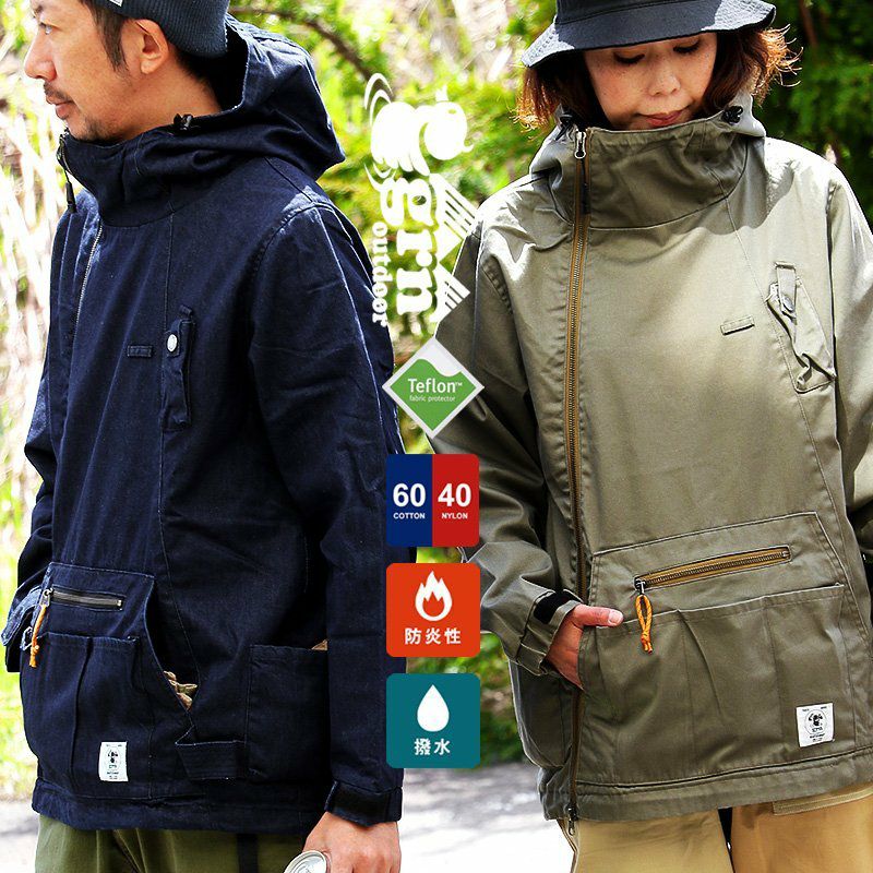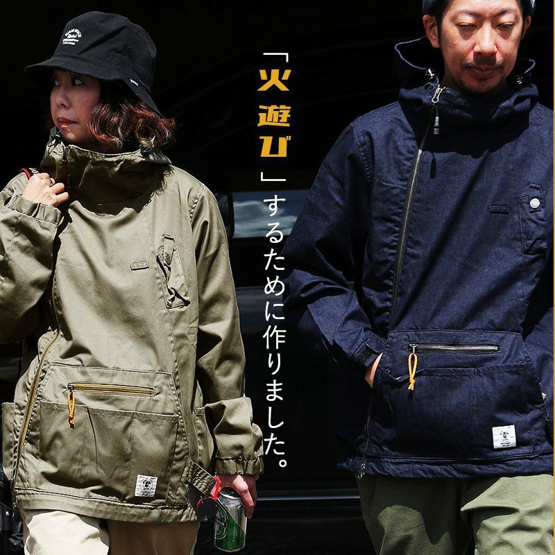 「火遊び」するために作りました。 マウンテンパーカー メンズ レディース マンパー コットン ツイル デニム 燃えにくい 難燃 テフロン 撥水 ガストーチ専用ポケット ホイッスル付き 斜めジップ メンズライク カジュアル おしゃれ アウトドア キャンプ PATY パティ GRN OUTDOOR ジーアルエヌアウトドア