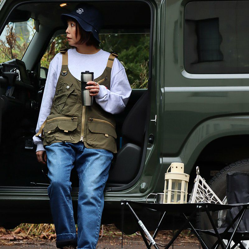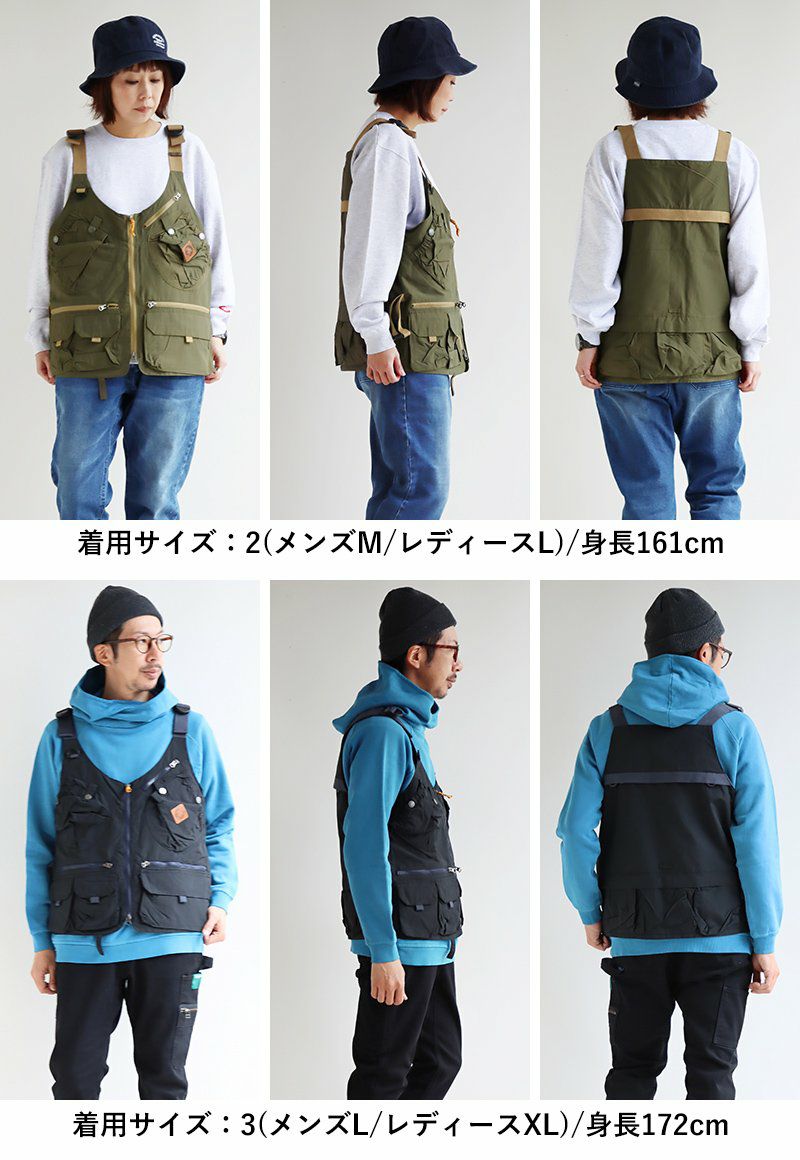 本当に「手ぶら」。バッグを持たせる気がありません。笑 GRN OUTDOOR ジーアルエヌアウトドア ベスト メンズ レディース ジップアップ 前開き バッグ要らず 手ぶら 撥水 ロクヨンクロス 60/40 コットン ナイロン 多ポケット メンズライク カジュアル アウトドア パティ