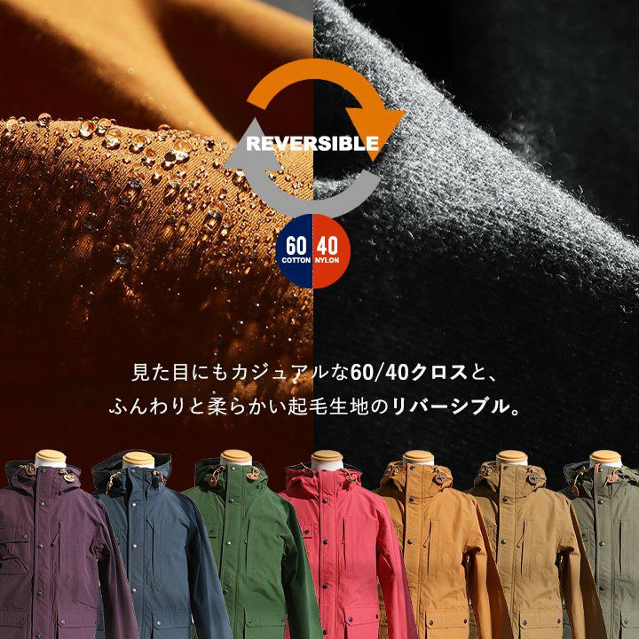 両面「メイン級」の使いやすさ。 マウンテンパーカー リバーシブル メンズ レディース アウター 長袖 ロクヨンクロス 撥水 防汚 防風 テフロン加工 カジュアル アウトドア 軽い 暖かい 秋 春 キャンプ パティ