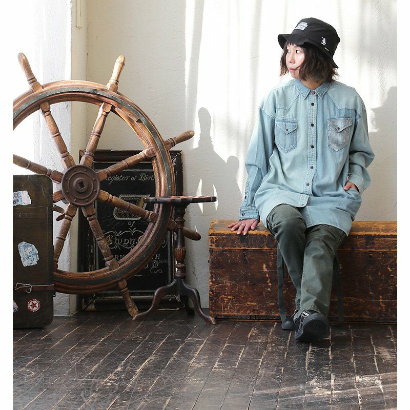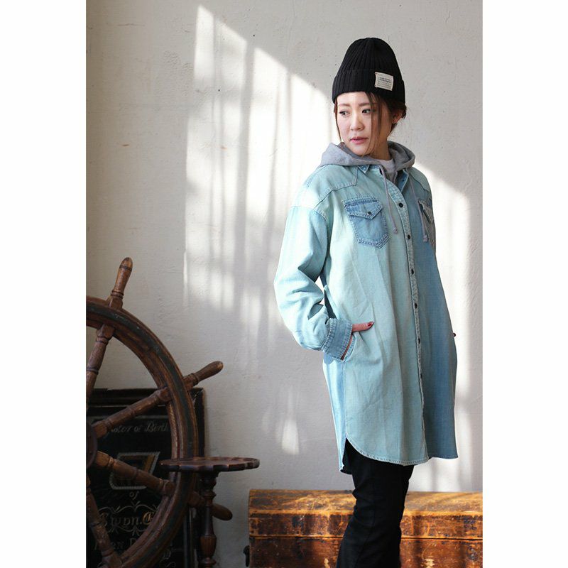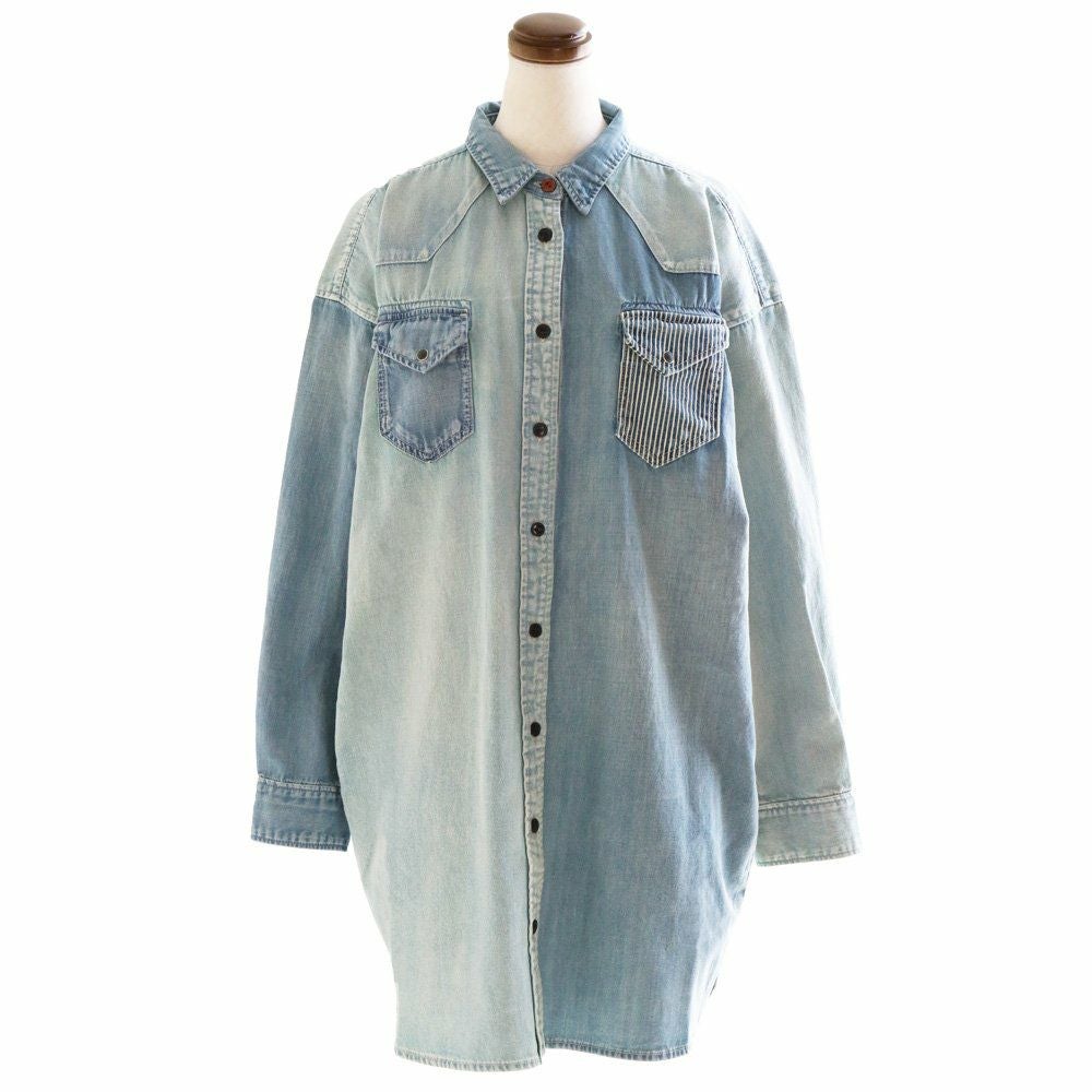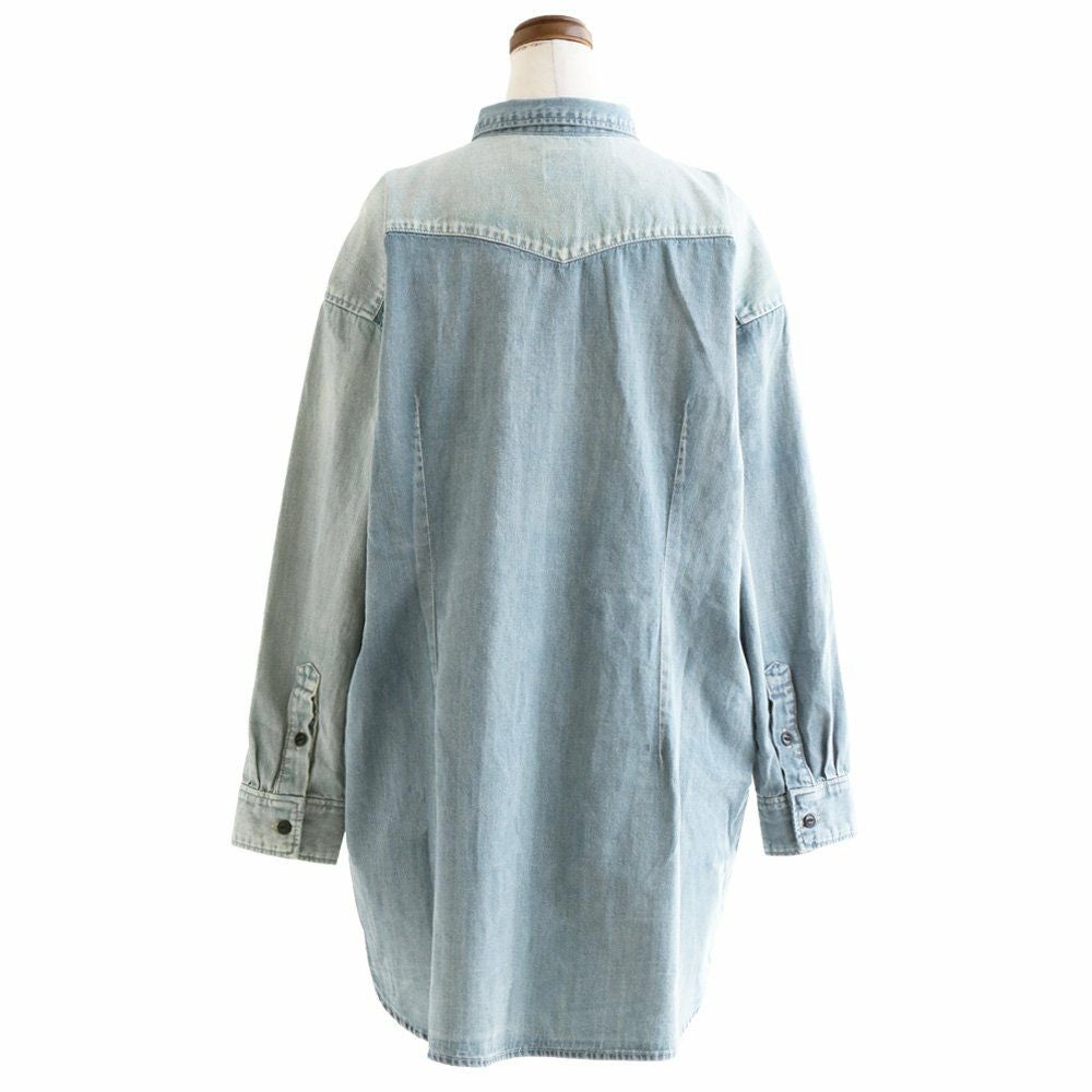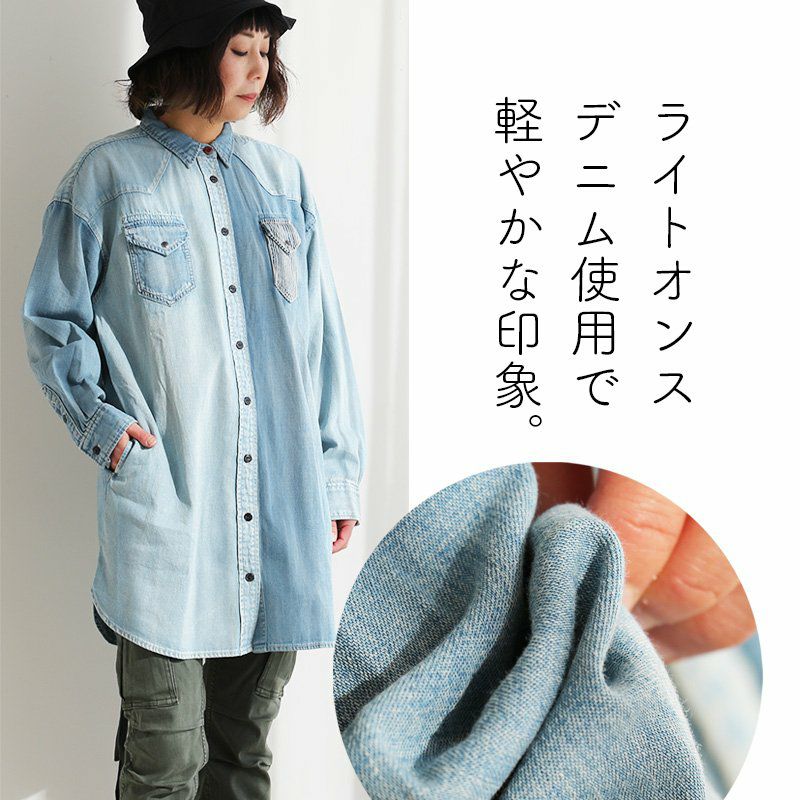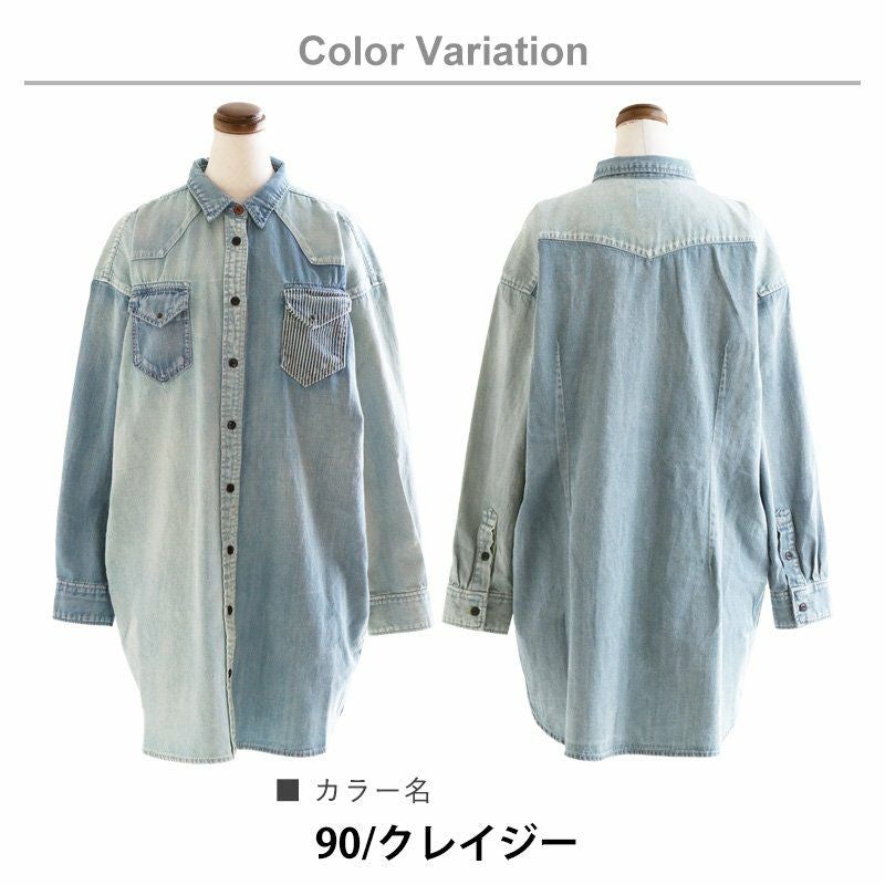 ワンピースやチュニック、羽織りとしても使える絶妙な丈感! ワンピース シャツワンピ―ス レディース ひざ上 長袖 オーバーサイズ デニム クレイジー デニムワンピ ロングシャツ デニムシャツ ウエスタン 細見え 大きい PATY パティ KRIFF MAYER クリフメイヤー