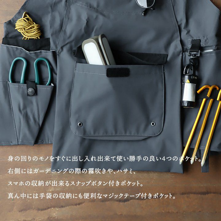 まるで「ポケット」かのように、自然で安心。 エプロン ツールエプロン メンズ レディース 前掛け 防汚 撥水 ロクヨンクロス ガーデニング キャンプ アウトドア 防汚 撥水 収納 多ポケット パティ