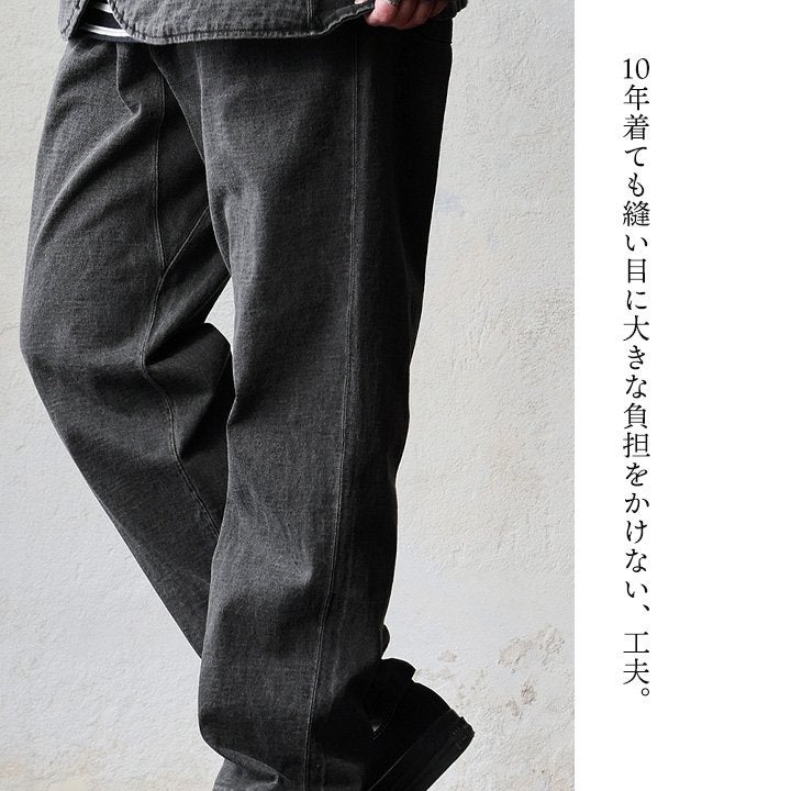 毎日穿くなら「しっかり伸びて、バッチリ丈夫」。 KRIFF MAYER クリフメイヤー クライミングパンツ メンズ レディース ストレッチ 動きやすい しっかり 丈夫 ウエストゴム ウェイビングベルト テーパード デニム 裾裏アクセント アメカジ カジュアル メンズライク パティ