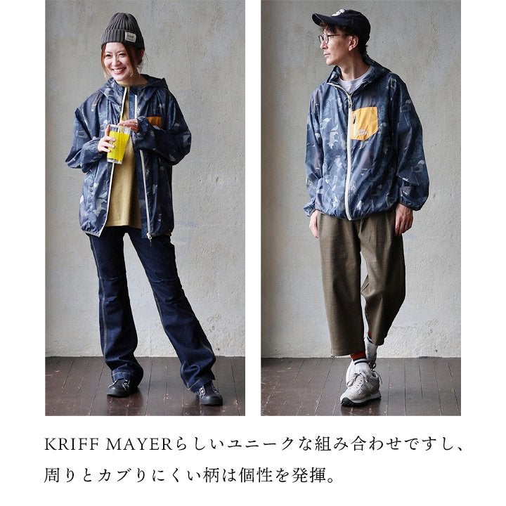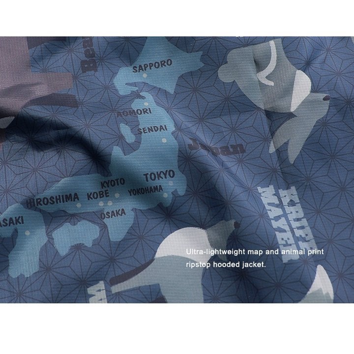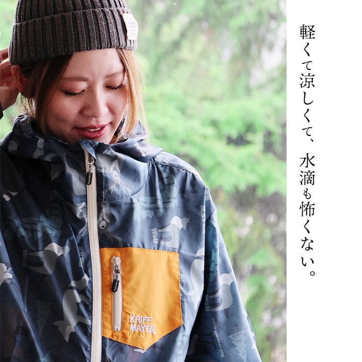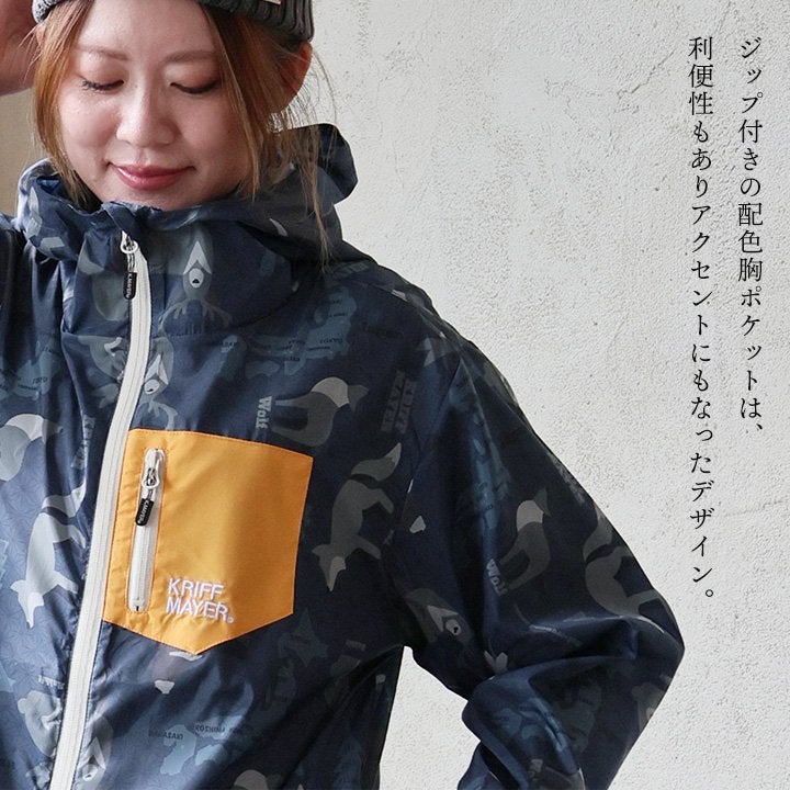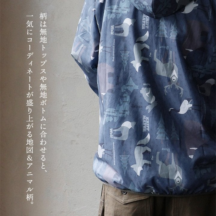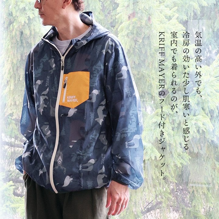 軽くて涼しくて、水滴も怖くない。 KRIFF MAYER クリフメイヤー ジャケット フード付き 長袖 メンズ レディース ハイネック 総柄 アニマル 地図 プリント 撥水 防汚 クリーネス リップストップ 薄手 軽い 涼しい ポケット 大きいサイズ カジュアル 夏 パティ