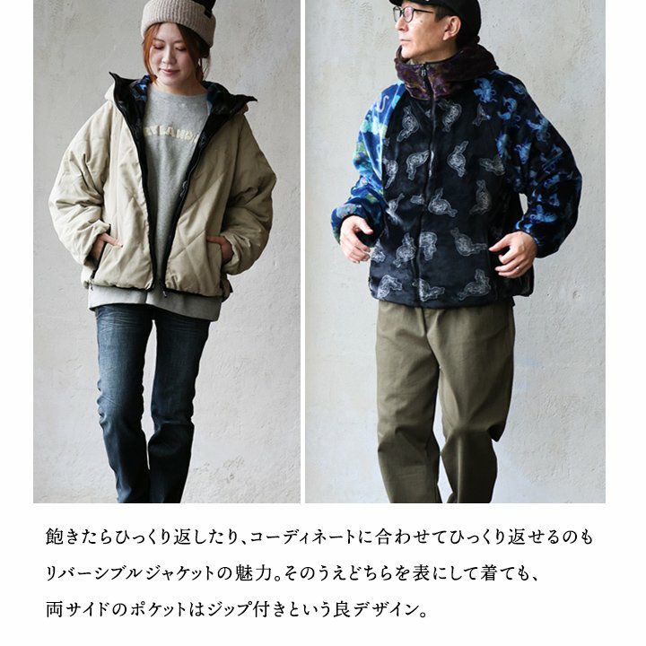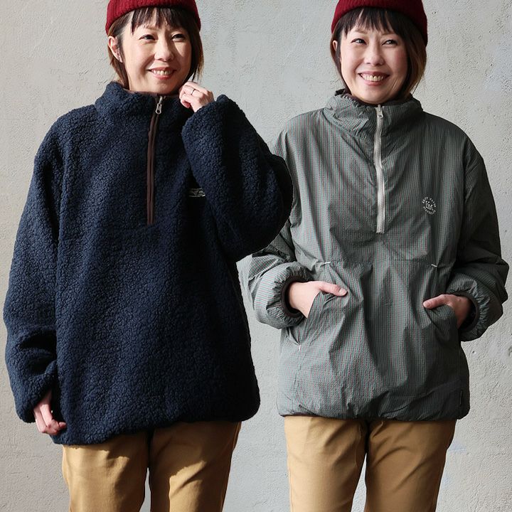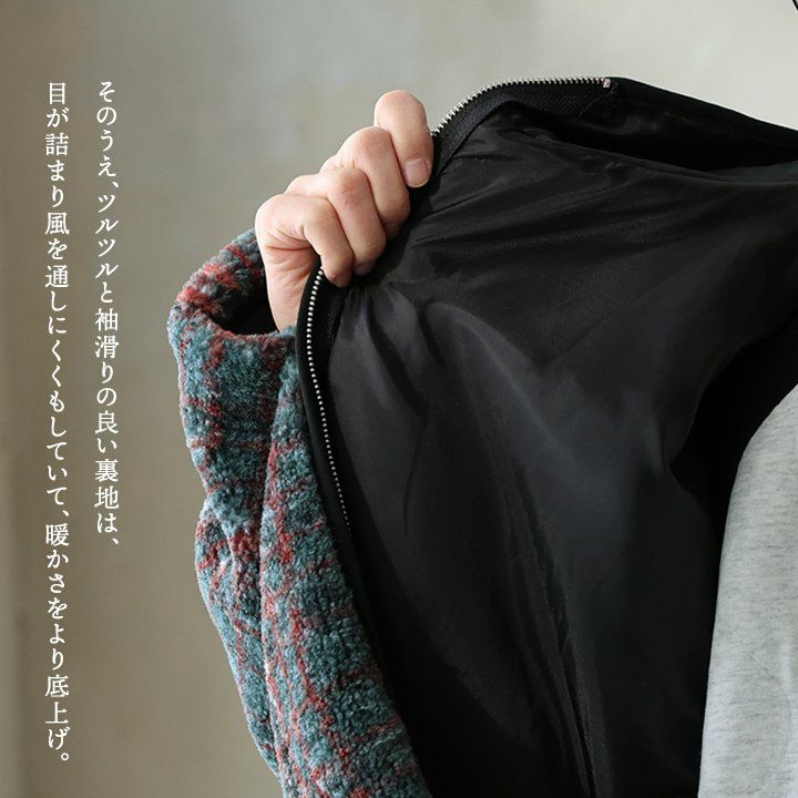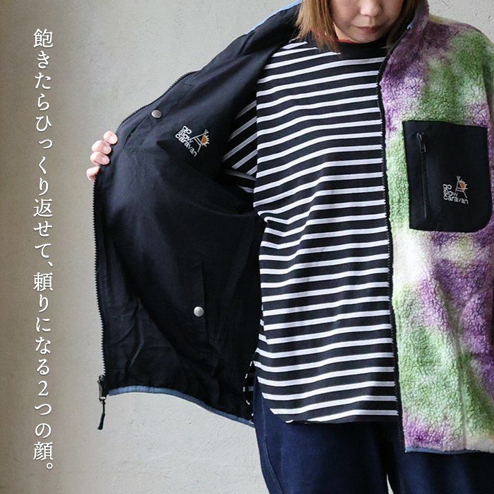 飽きたらひっくり返せて、頼りになる2つの顔。 go slow caravan ゴースローキャラバン ジャケット ボアジャケット メンズ レディース スタンドネック リバーシブル ボア リップストップ ナイロン ポリエステル 暖かい 軽い タフ しっかり生地 ポケット ロゴ 刺繍 大きいサイズ カジュアル 秋 冬 パティ