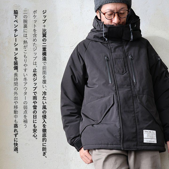 暖かさと軽さに特化した『疑似ダウン』。 N-3B ジャケット メンズ レディース ハイネック 無地 ソロナ 高機能 中綿 暖かい軽い 裏地付き ポケット ゆったり 大きいサイズ 体型カバー カジュアル ミリタリー ヴィンテージ 秋 冬 パティ Audience オーディエンス
