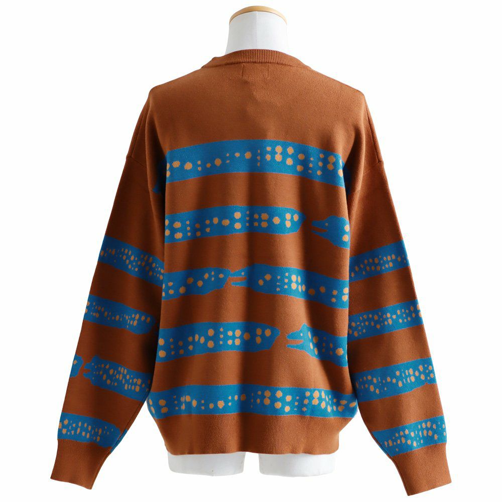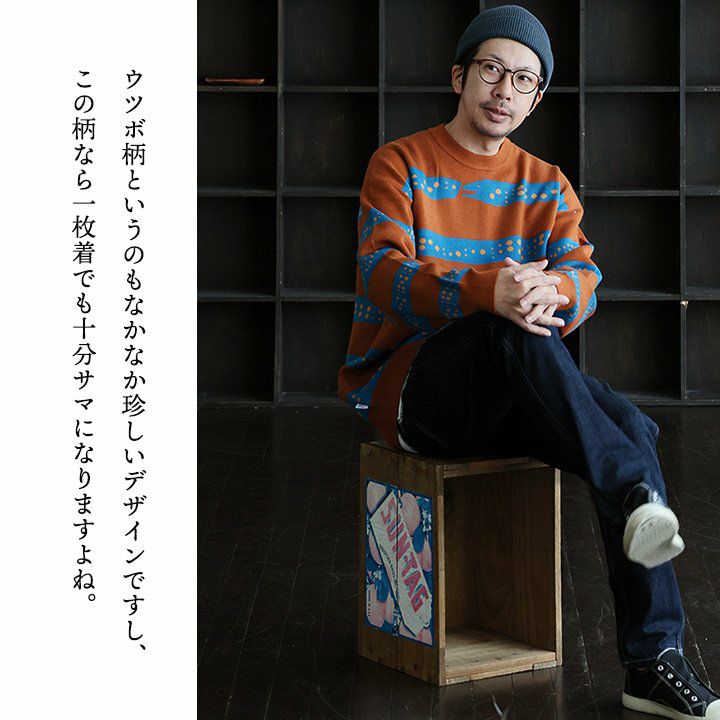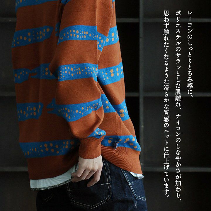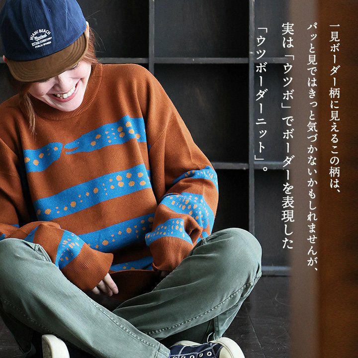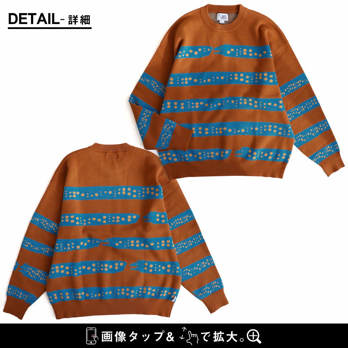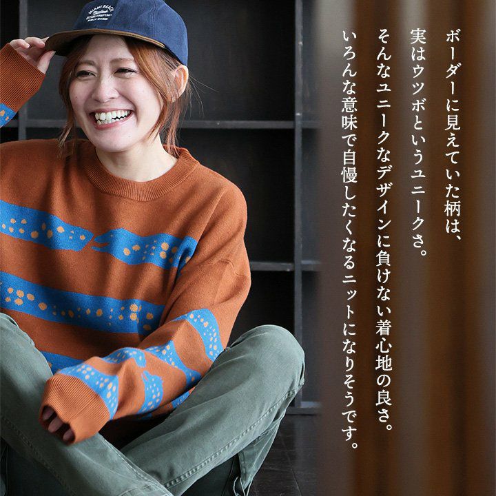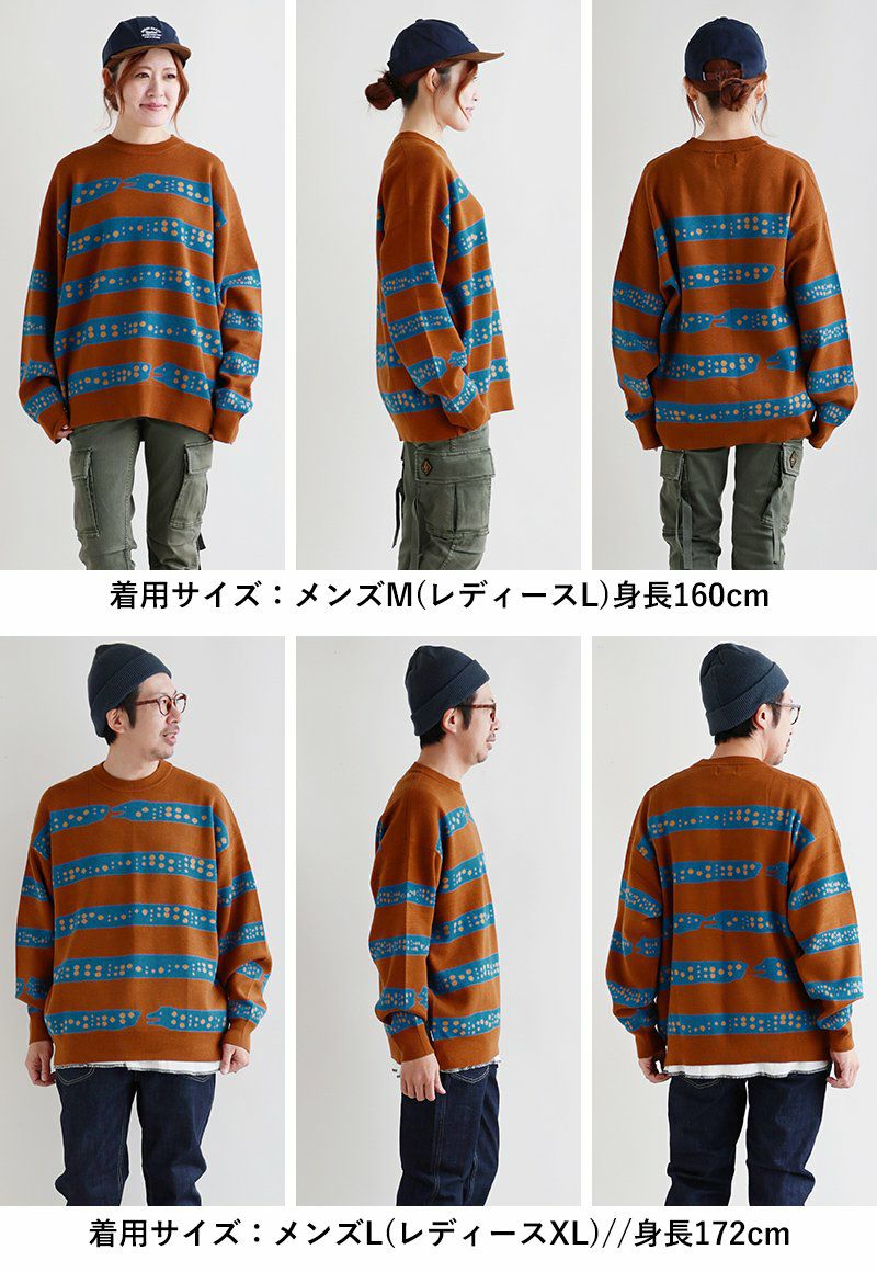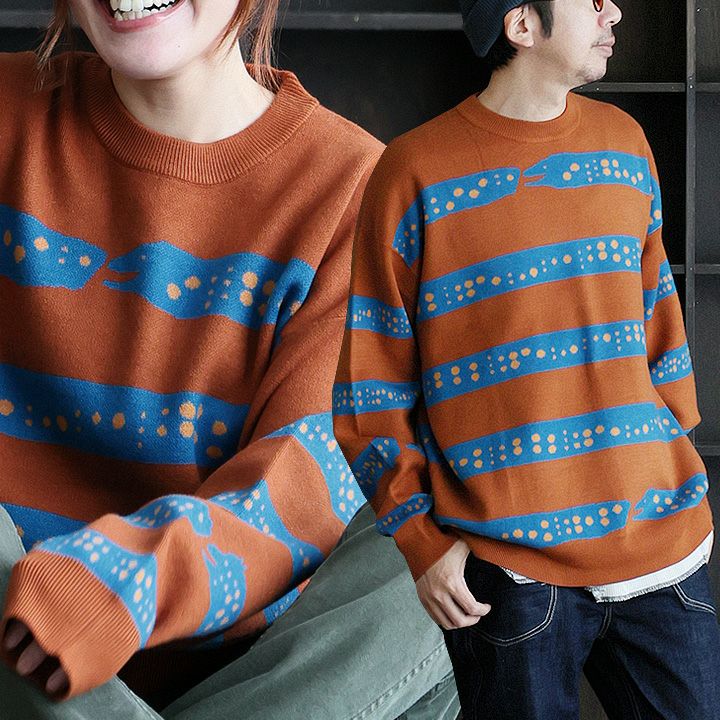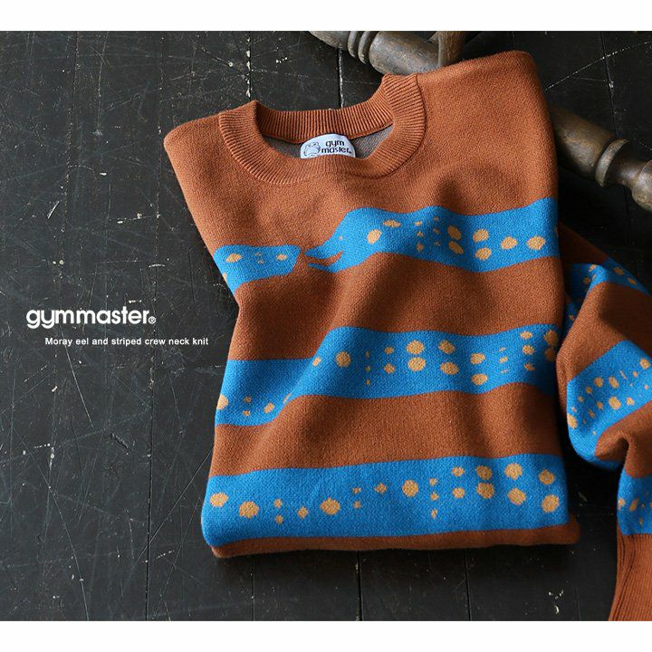 ウツボとボーダー!? gym master ジムマスター ニット セーター 長袖 メンズ レディース クルーネック ウツボ ボーダー柄 配色 チクチクしない レーヨン ポリエステル 伸縮性 ゆったり 大きいサイズ カジュアル 秋 冬 パティ