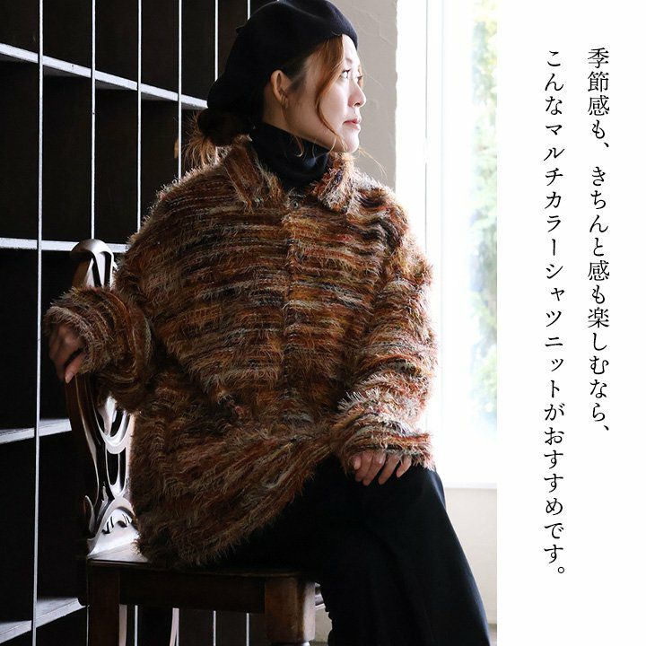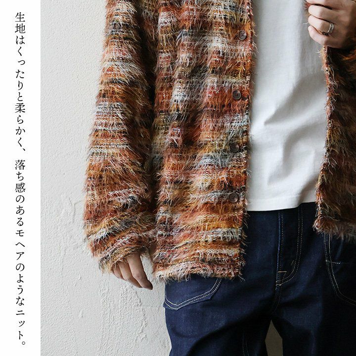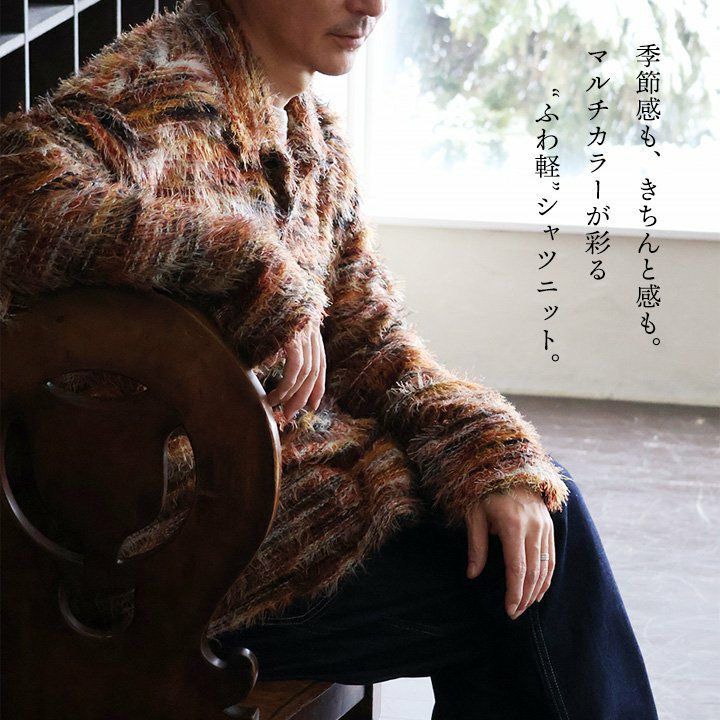 季節感も、きちんと感も。マルチカラーが彩る“ふわ軽”シャツニット。 ニット シャツニット 長袖 メンズ レディース 羽織 モヘアライク マルチカラー ポリエステル 柔らか 暖かい 軽い ゆったり 重ね着 カジュアル レトロ ヴィンテージ 秋 冬 パティ