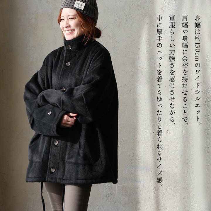 冬の定番アウターに、自然な存在感を。 ジャケット コート メンズ レディース スタンドネック アクリル シャギー 暖かい 裏地付き ポケット 大きいサイズ カジュアル ミリタリー 秋 冬 パティ