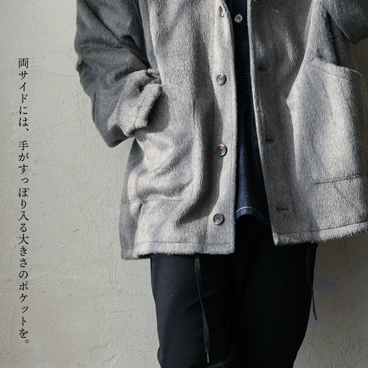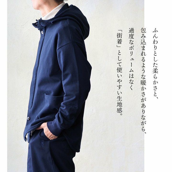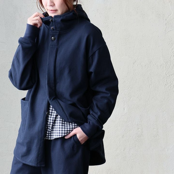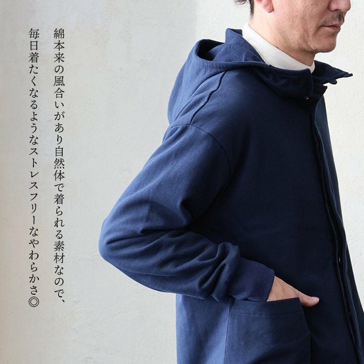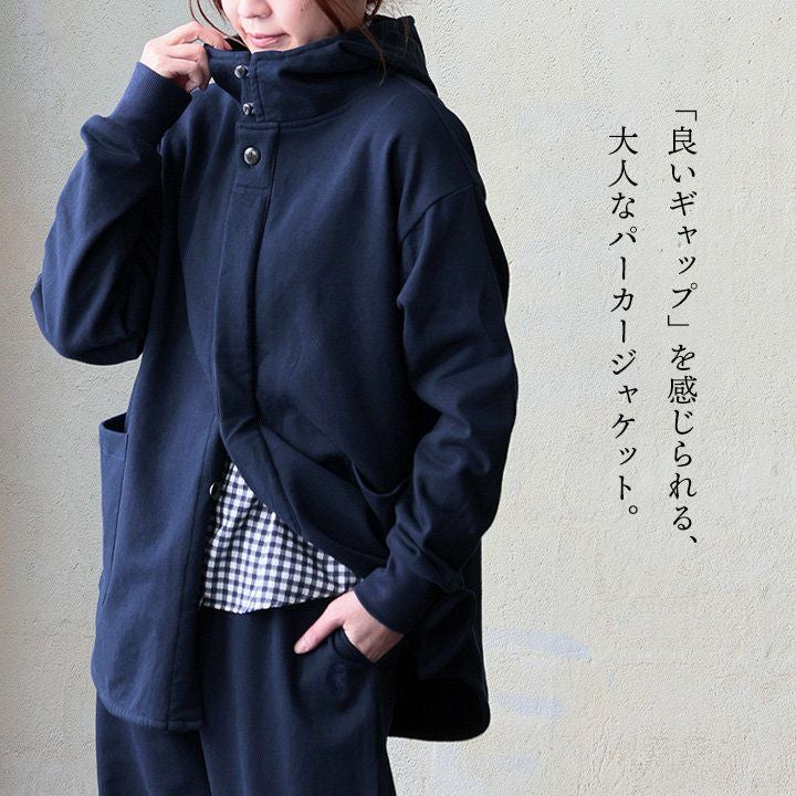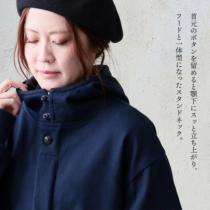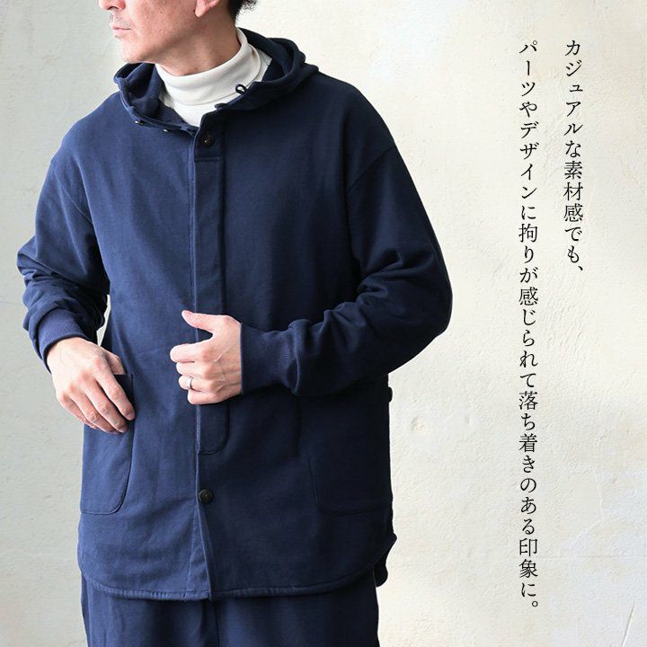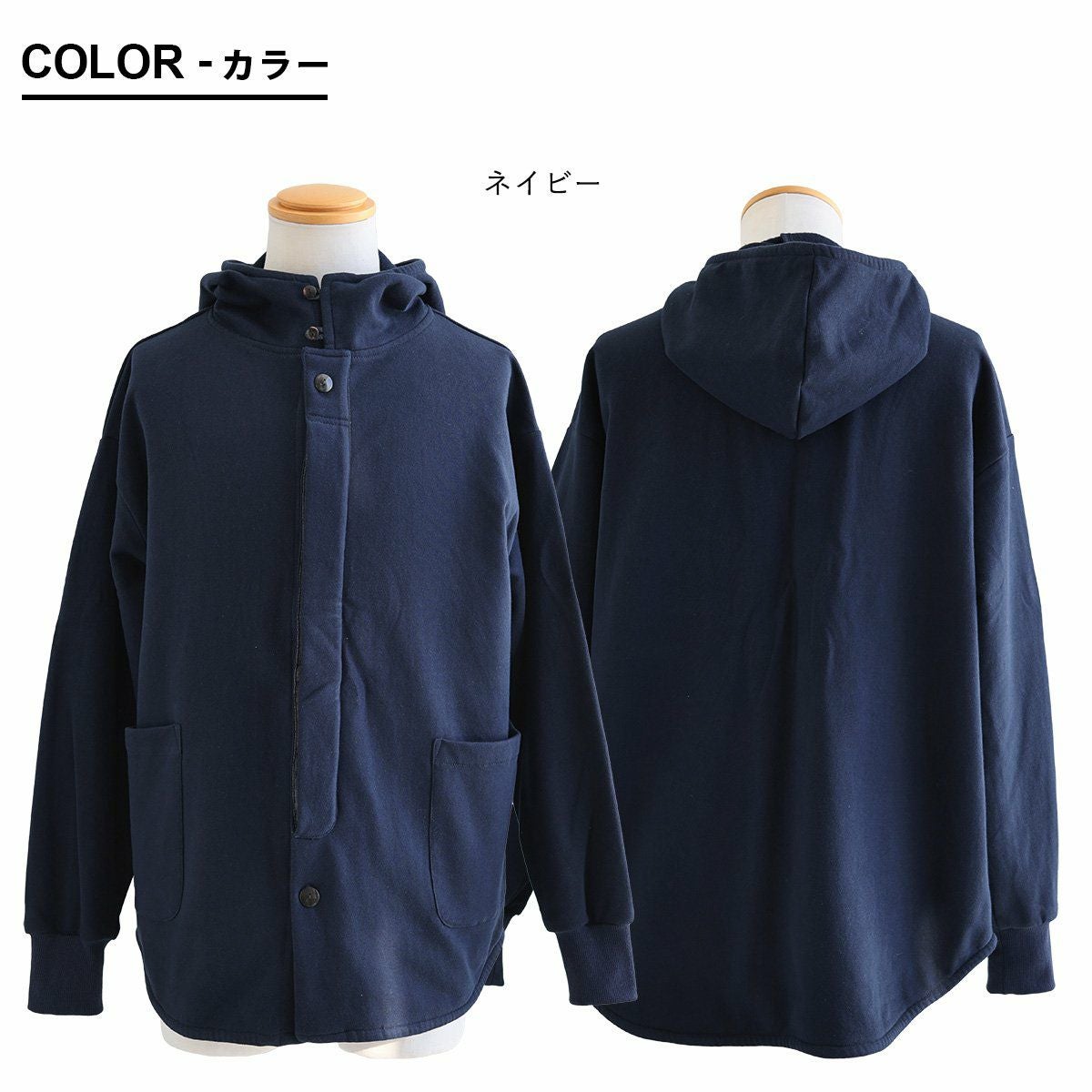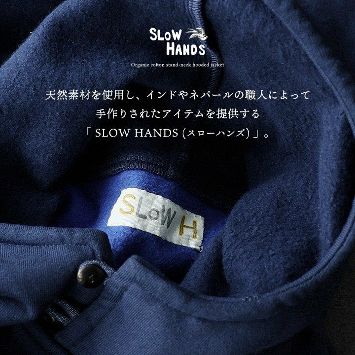 「良いギャップ」を感じられる、大人なパーカージャケット。 SLOW HANDS スローハンズ ジャケット フード付きジャケット パーカー メンズ レディース スタンドネック ボタン ポケット オーガニックコットン 綿100 裏起毛 ゆったり 大きいサイズ カジュアル 秋 冬 パティ
