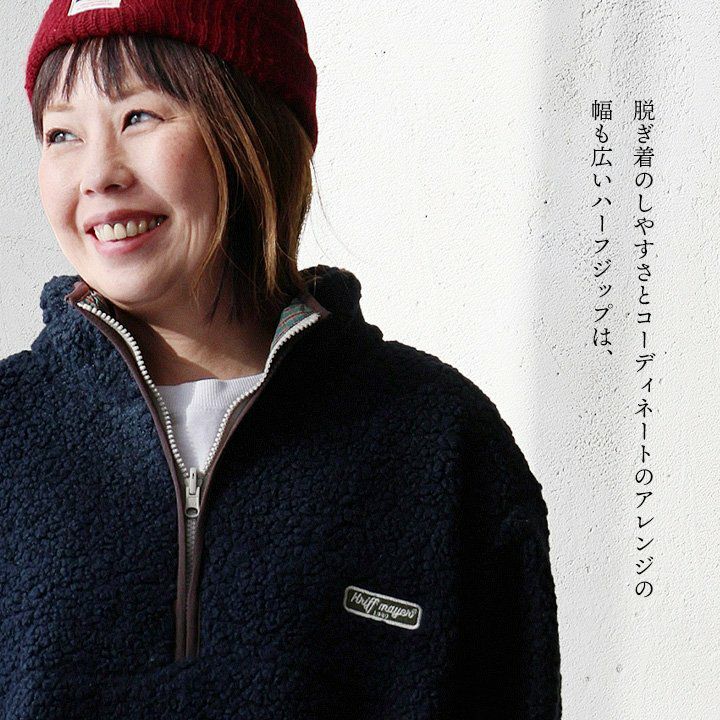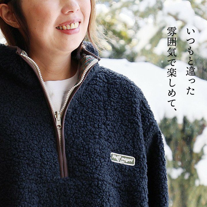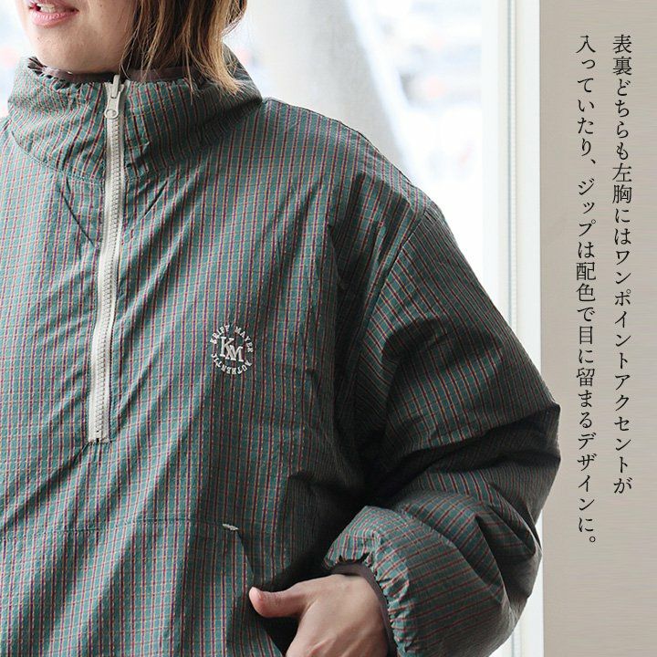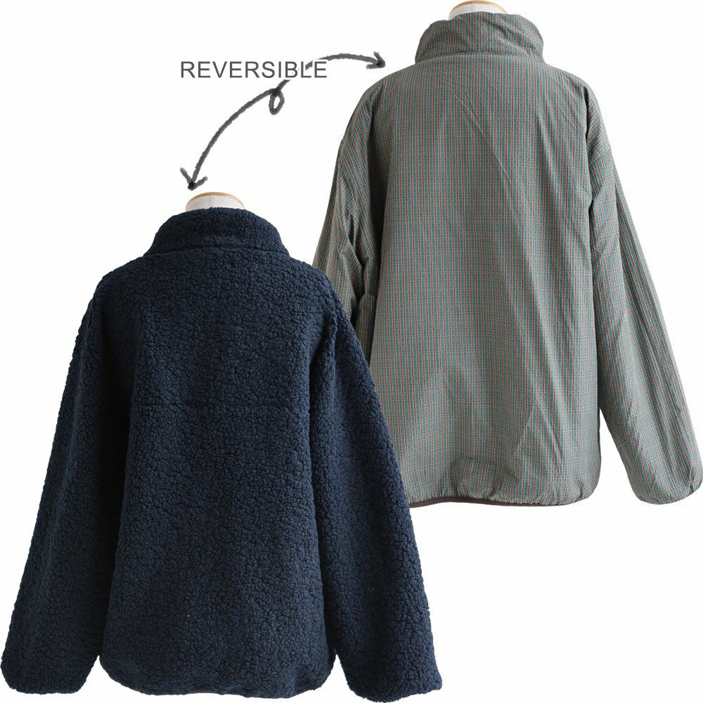 いつもと違った雰囲気で楽しめて、飽きたらひっくり返せる。 KRIFF MAYER クリフメイヤー ジャケット 長袖 ハーフジップ レディース スタンドネック 無地 チェック柄 シープボア ポリエステル 配色 暖かい 軽い ゆったり 大きいサイズ カジュアル 秋 冬 パティ