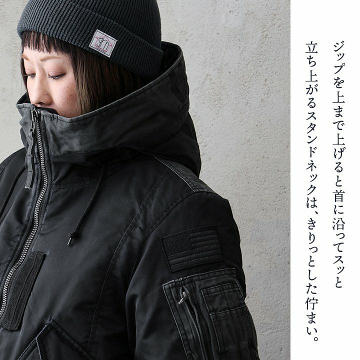 極寒に挑むための設計を、そのまま日常に。 フライトジャケット N-2B メンズ レディース ナイロン ポリエステル 中綿 暖かい フード 2WAY 袖リブ ファー ポケット 大きいサイズ ミリタリー ヴィンテージ カジュアル 秋 冬 パティ HOUSTON ヒューストン