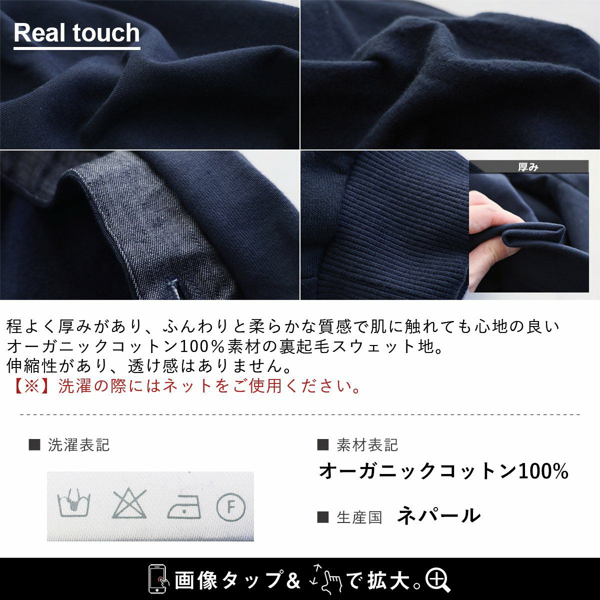 きちんとしてるのに楽ちんな、「不思議」な街着パンツ。 SLOW HANDS スローハンズ パンツ スウェットパンツ テーパード モロッコパンツ オーガニックコットン 綿100 裏起毛 スウェット 暖かい ワンポイント 刺繍 ウエストゴム ゆったり 大きいサイズ 体型カバー 裾リブ カジュアル 秋 冬 パティ