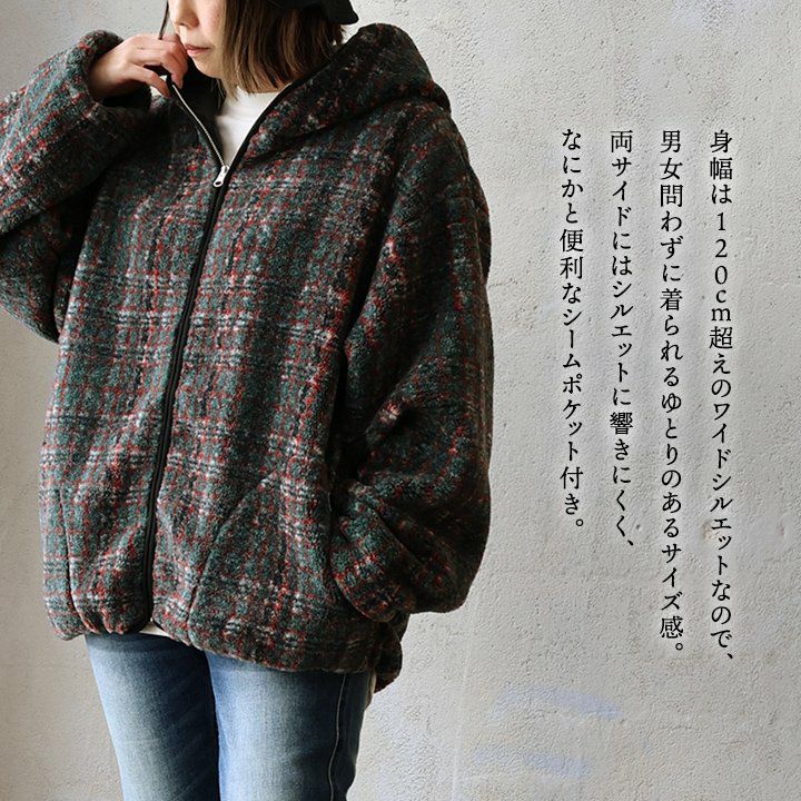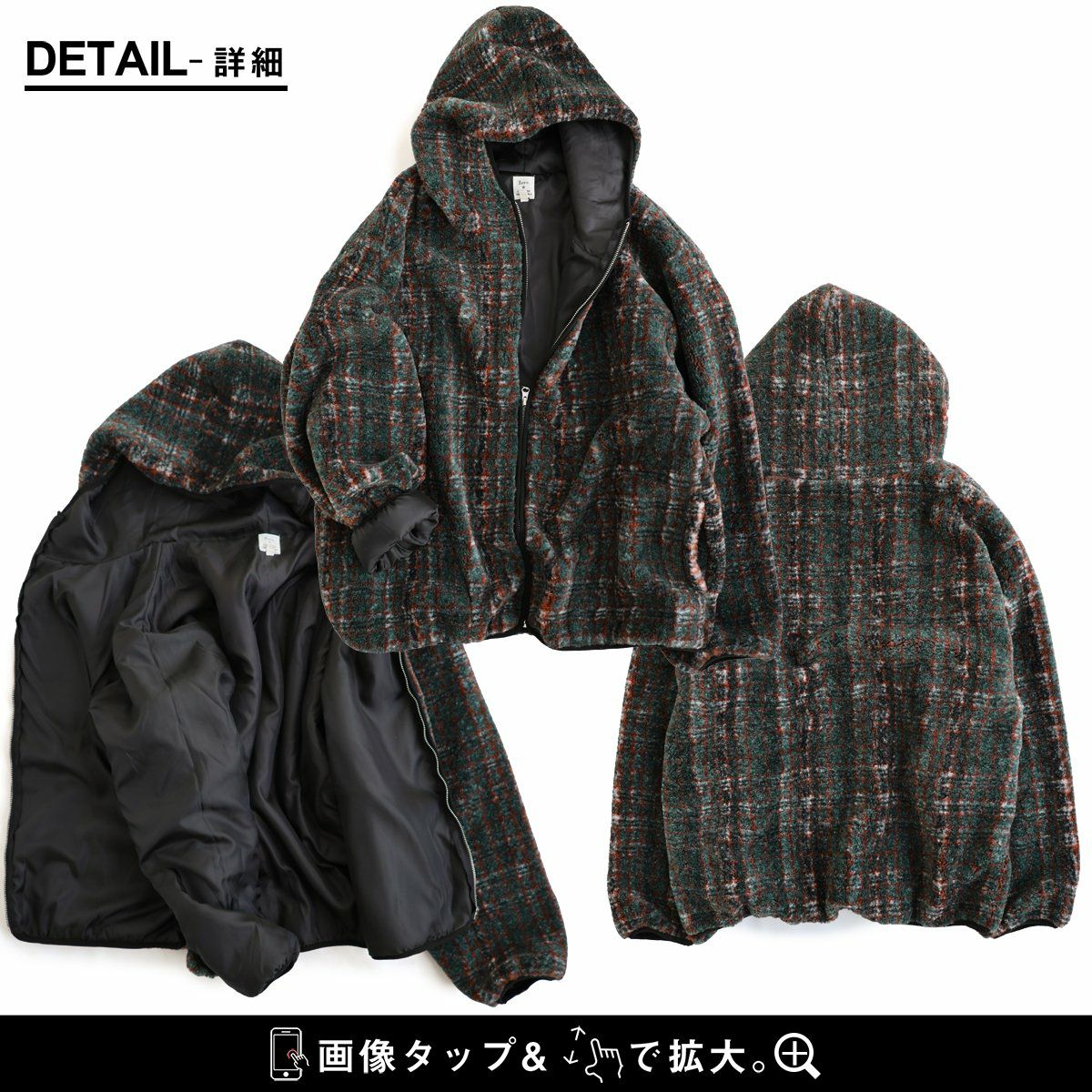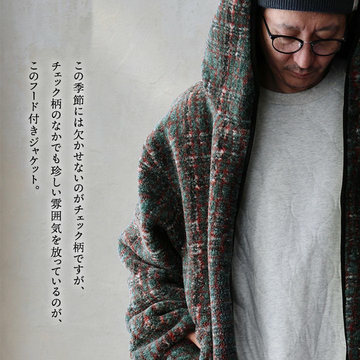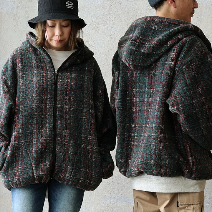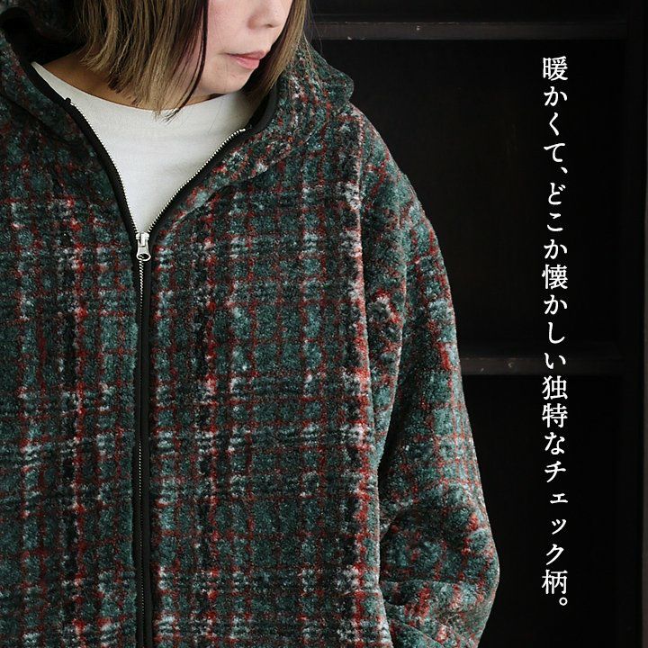 暖かくて、どこか懐かしい独特なチェック柄。 ジャケット フード付き フーディー パーカー メンズ レディース チェック柄 総柄 ポリエステル 軽い 暖かい 裏地付き ゆったり 大きいサイズ カジュアル ヴィンテージ 秋 冬 パティ
