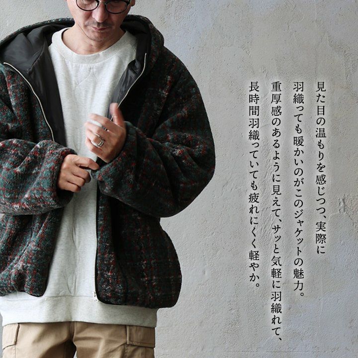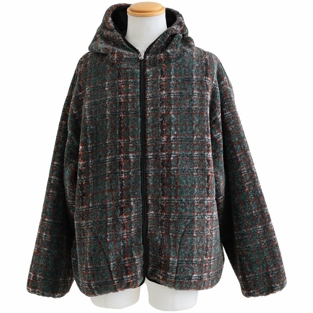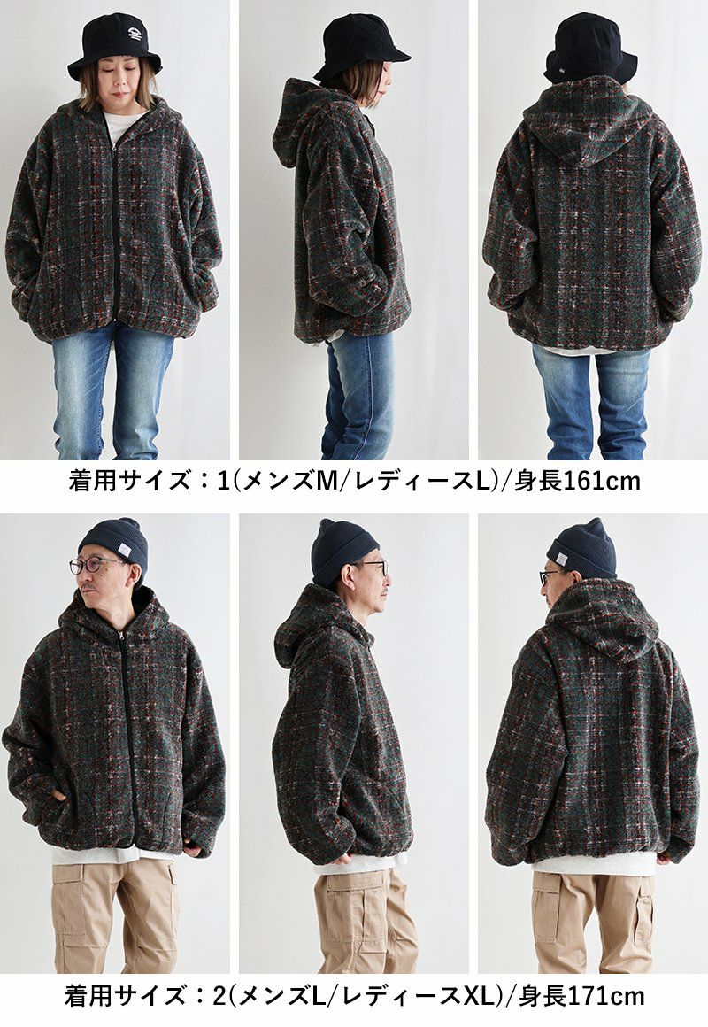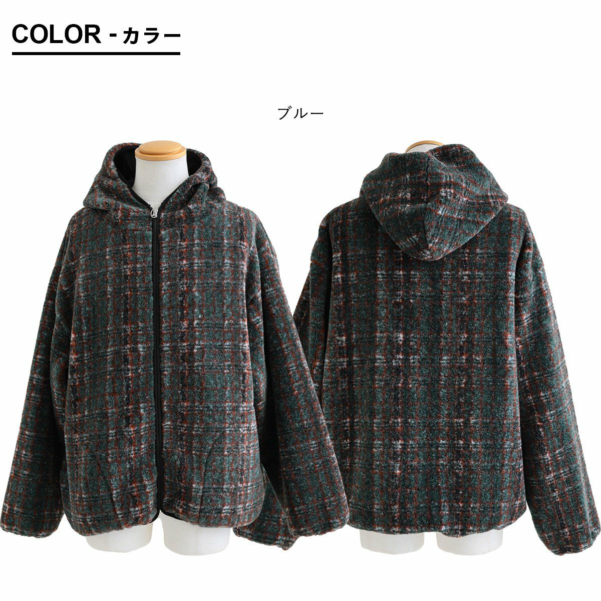 暖かくて、どこか懐かしい独特なチェック柄。 ジャケット フード付き フーディー パーカー メンズ レディース チェック柄 総柄 ポリエステル 軽い 暖かい 裏地付き ゆったり 大きいサイズ カジュアル ヴィンテージ 秋 冬 パティ