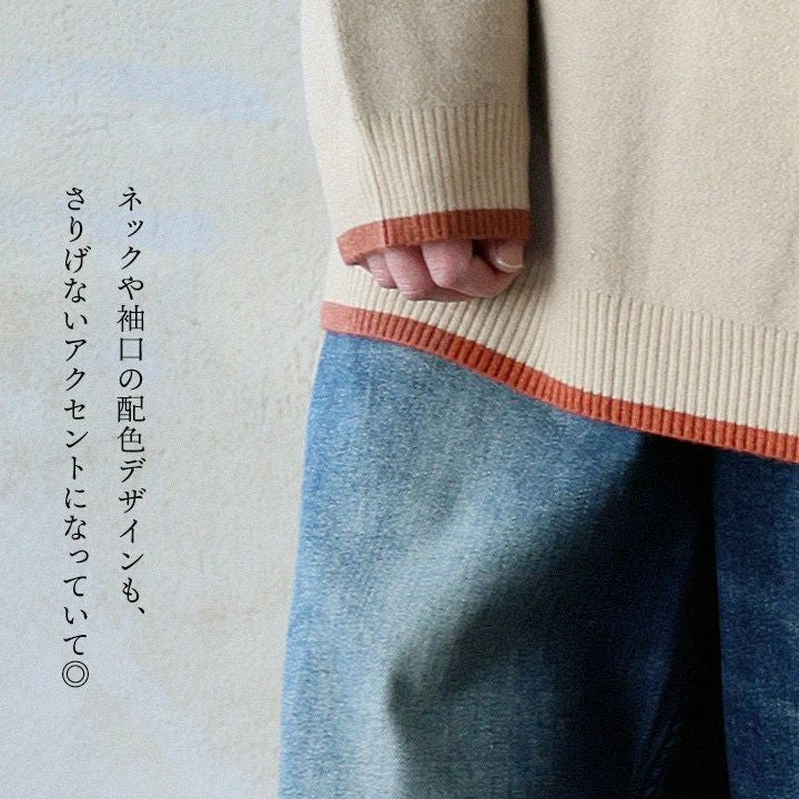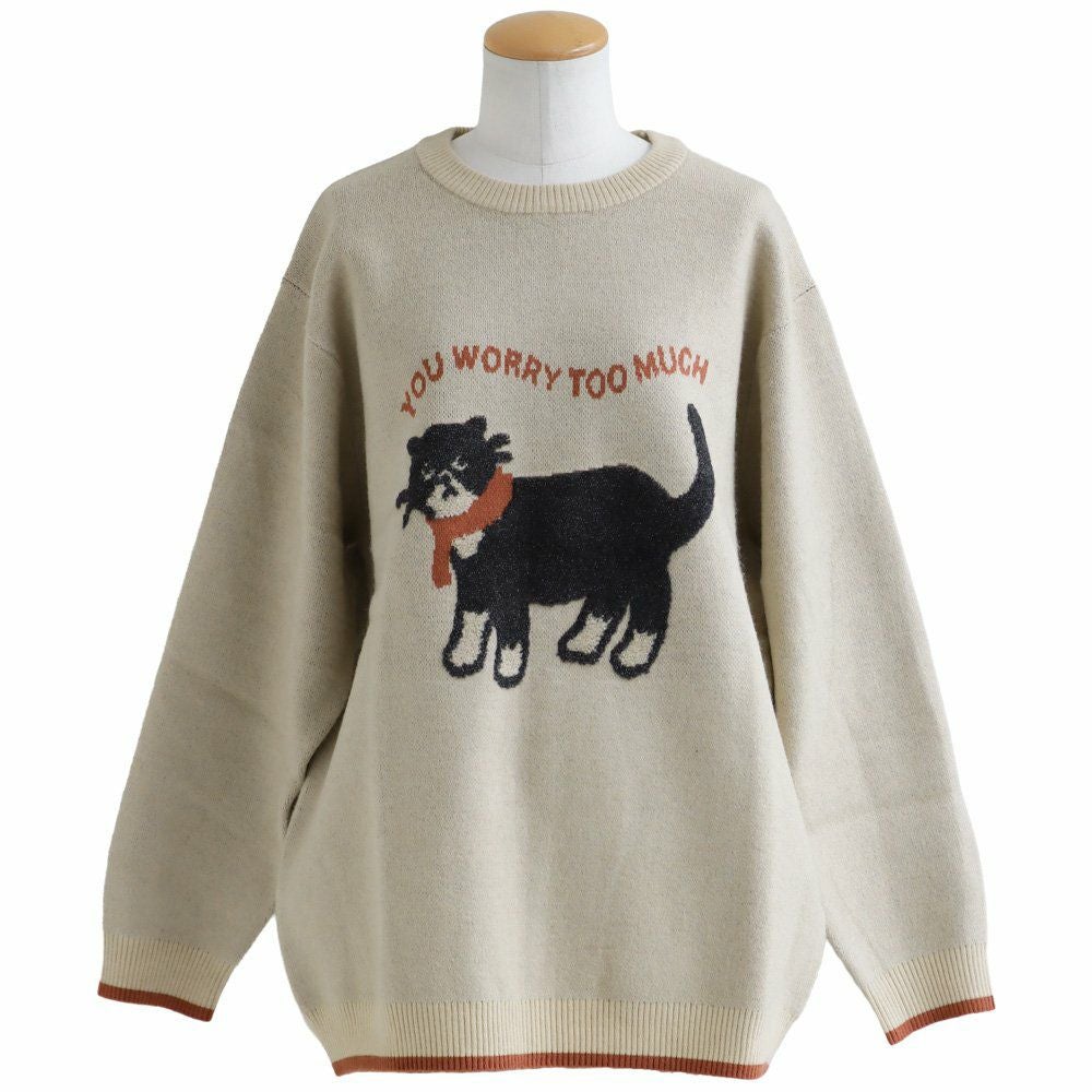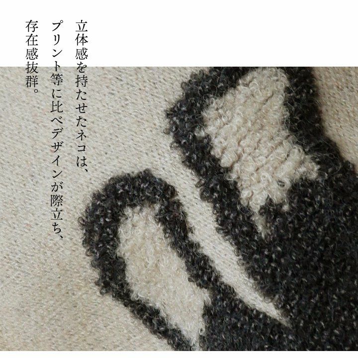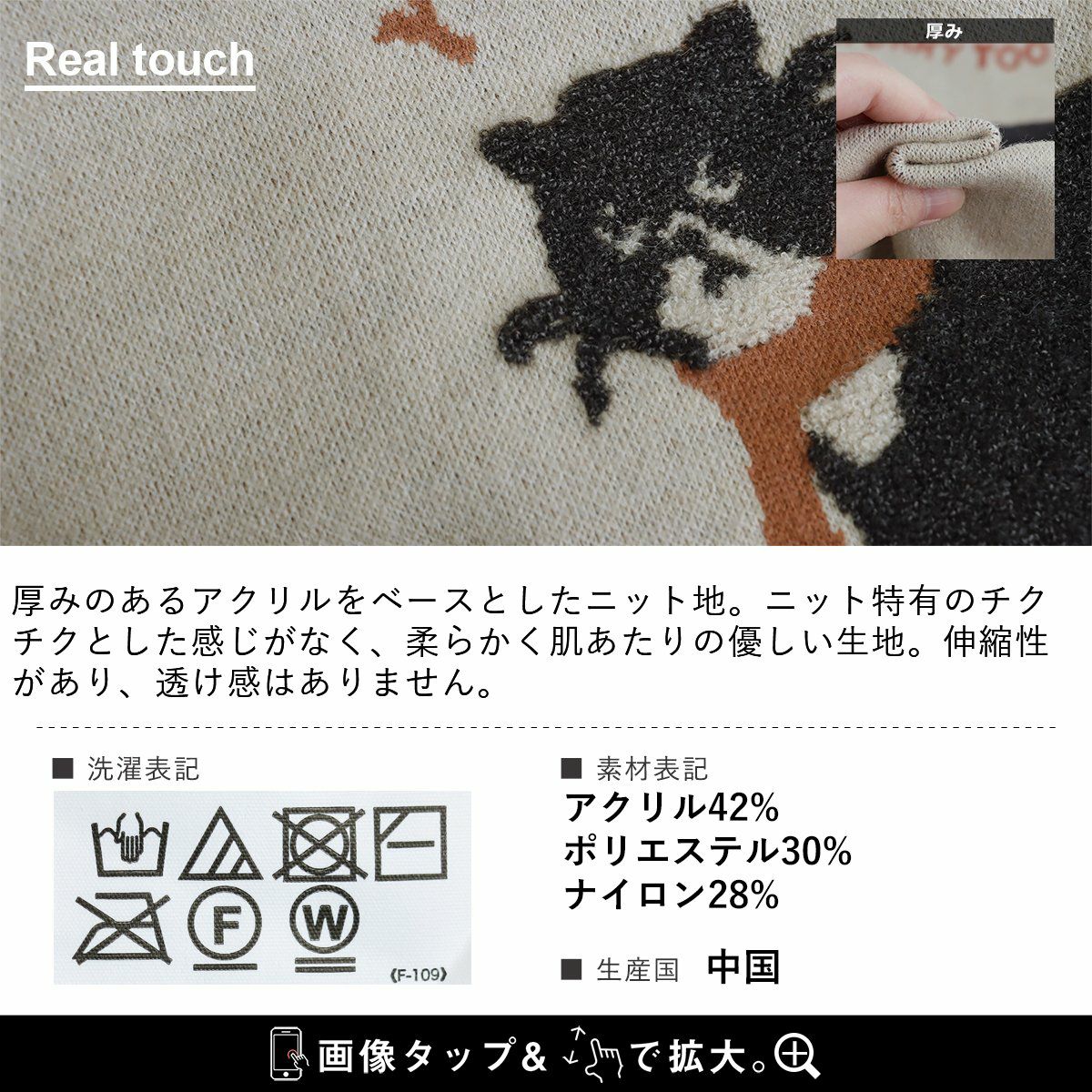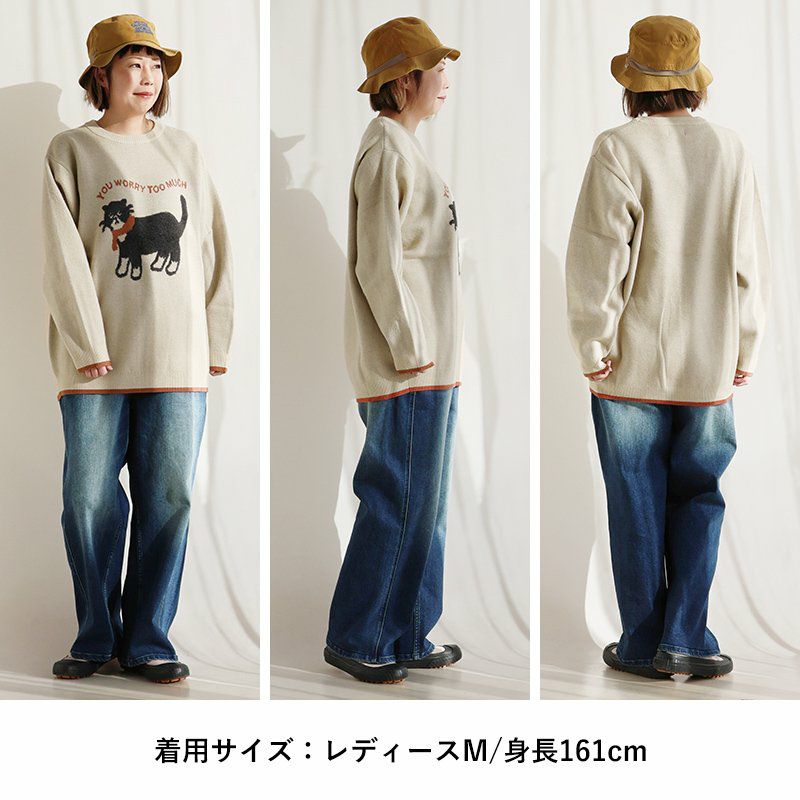 素朴で憎めないネコ、安心して着られる心地良さ。 KRIFF MAYER クリフメイヤー ニット セーター 長袖 レディース クルーネック ネコ 猫 アニマル ロゴ 配色 もちのび 伸縮性 洗濯出来る ゆったり 大きいサイズ カジュアル 秋 冬 パティ
