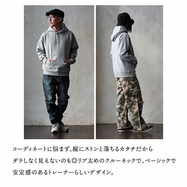 見た目も着心地も、「差」がつくヴィンテージ感。 Johnbull ジョンブル パーカー 長袖 メンズ レディース クルーネック フード 配色 無地 綿100 コットン トンプキン裏毛 しっかり生地 タフ 伸縮性 大きいサイズ カジュアル アメカジ 秋 冬 春 パティ