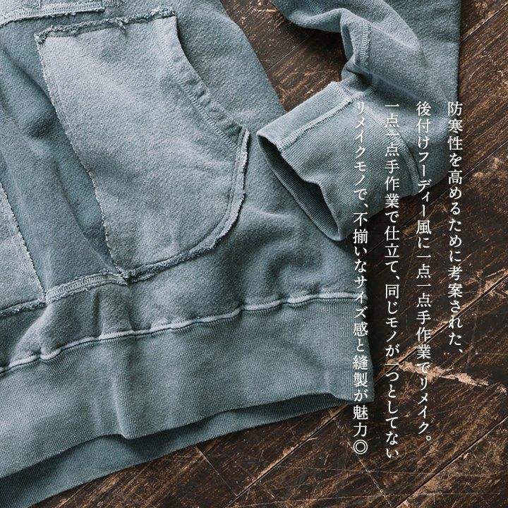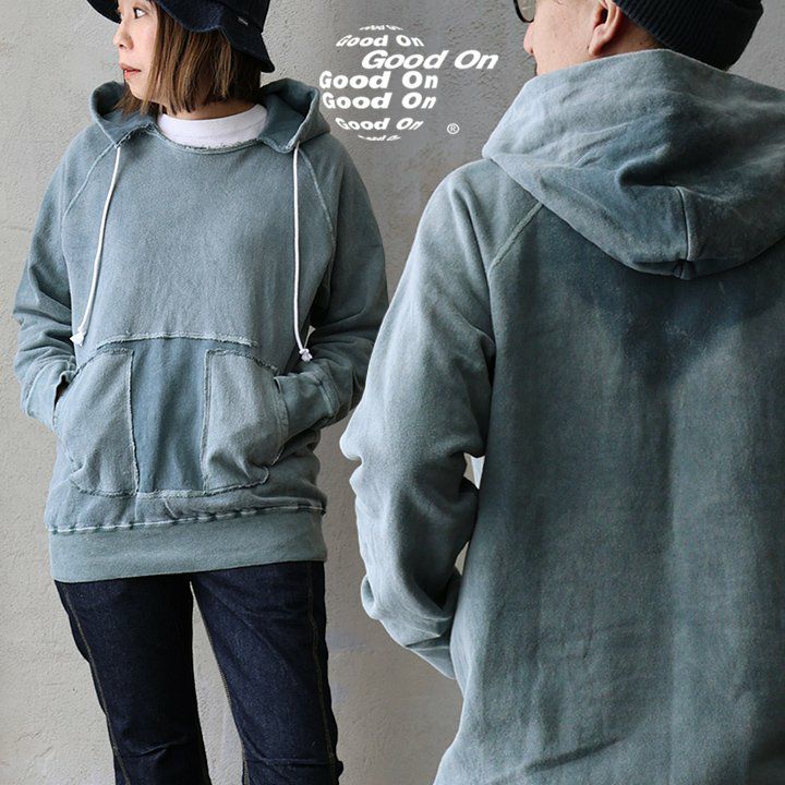 不揃いであることが「完成形」。 Good On グッドオン パーカー 長袖 メンズ レディース サンフェード加工 褪せ色 無地 ポケット リメイク フード 綿100 コットン 裏毛 しっかり生地 ボックスシルエット カジュアル アメカジ ヴィンテージ パティ