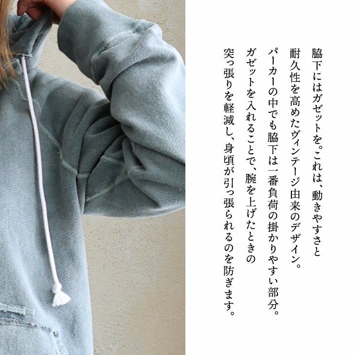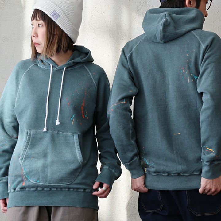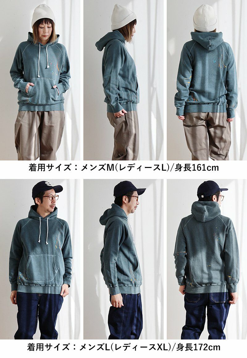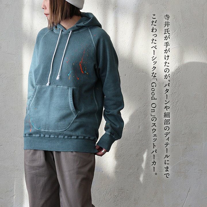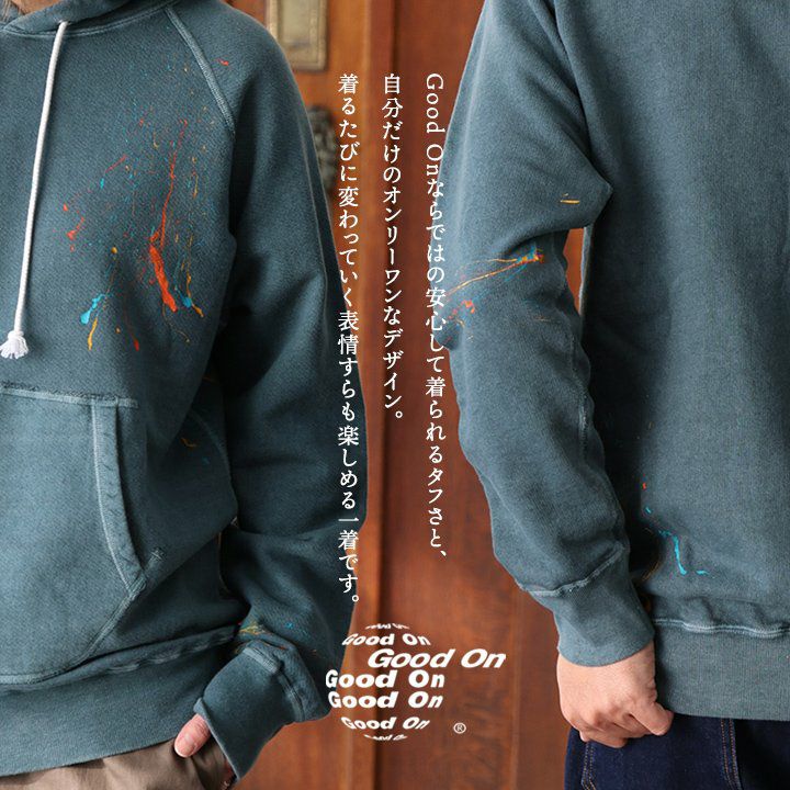安心して着られるタフさと、オンリーワンなペイント。 Good On グッドオン パーカー 長袖 メンズ レディース 日本製 米綿 USAコットン 裏毛 タフ しっかり生地 ペイント カンガルーポケット ステッチ ピグメント 褪せ色 大きいサイズ カジュアル レトロ ヴィンテージ パティ