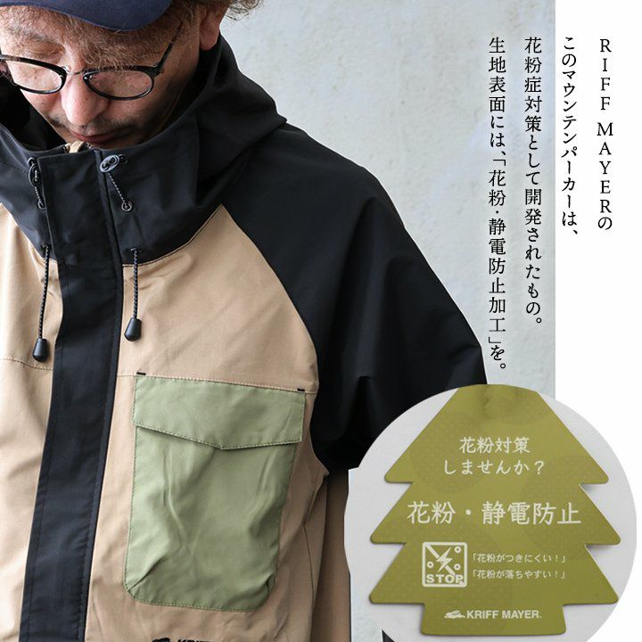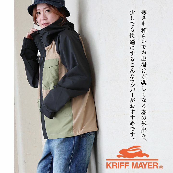 春の外出を、少しでも快適に。 KRIFF MAYER クリフメイヤー マウンテンパーカー マンパー 長袖 メンズ レディース スタンドネック 花粉 静電防止 撥水 防汚 軽い 軽量 ゆったり 大きいサイズ カジュアル 春 パティ